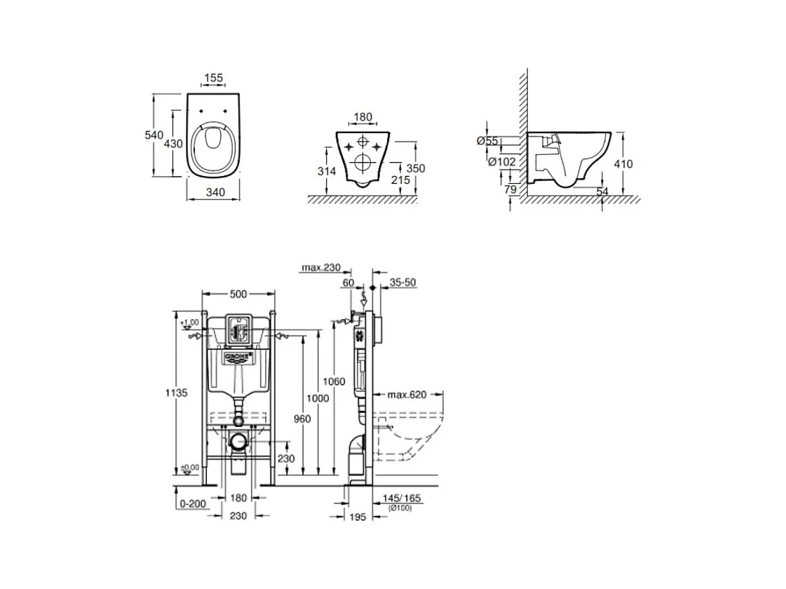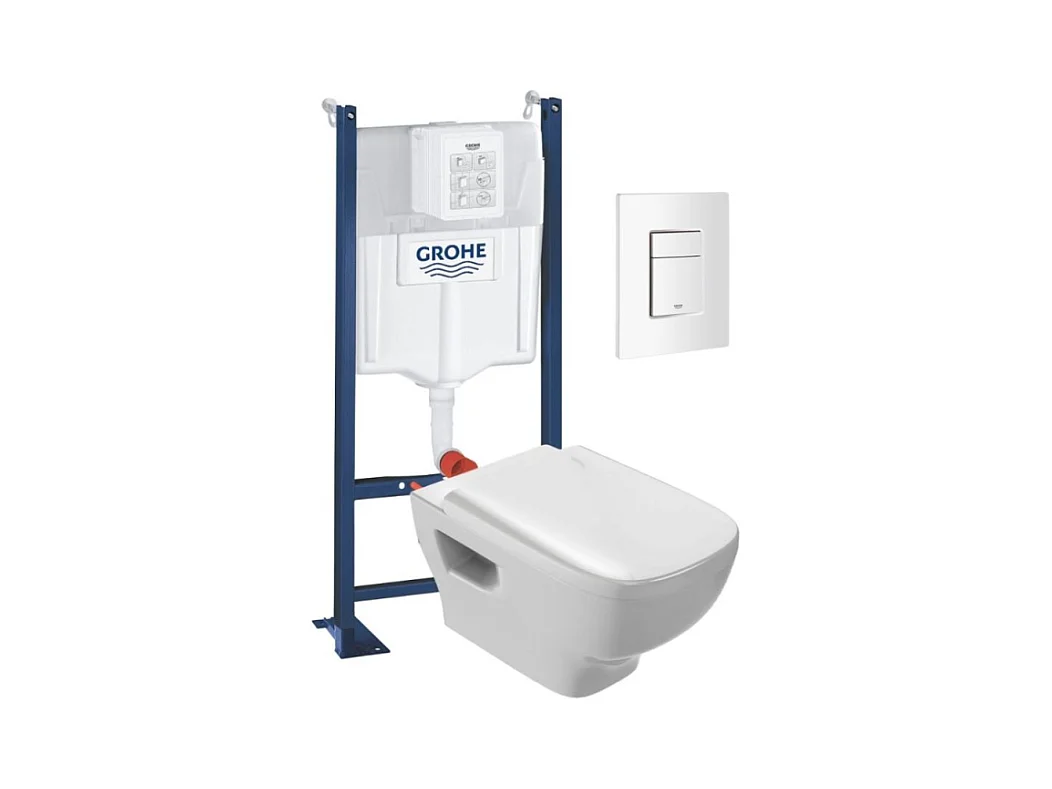 WC suspendu sans bride Jacob Delafon Struktura + abattant + Bâti support + Even Plaque de commande WC carré blanc
