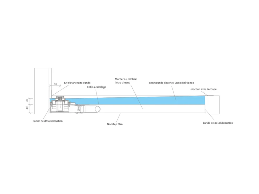 Wedi - Ecoulement horizontal pour receveur Fundo Riolito