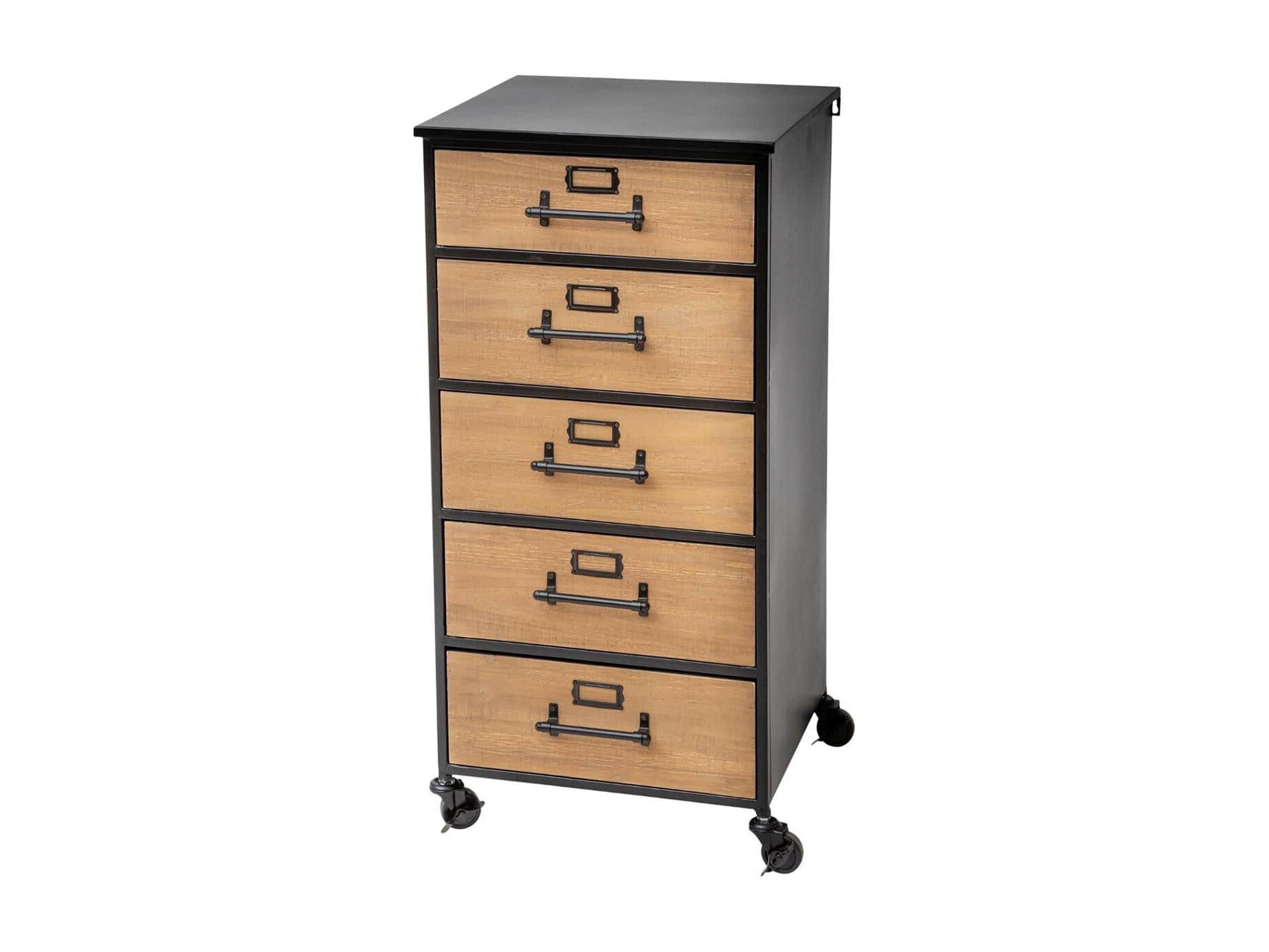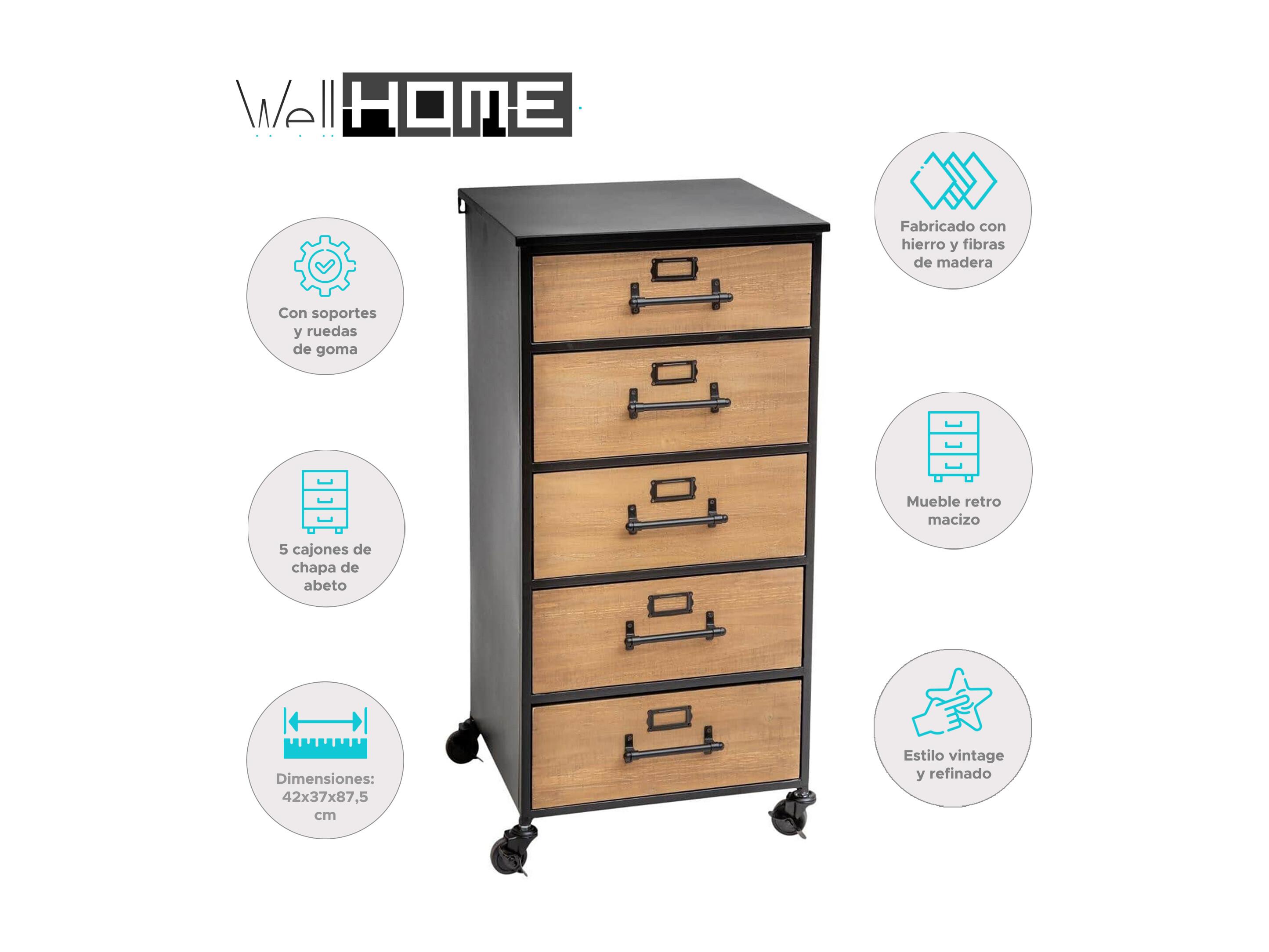 WELL HOME - Tiroir classeur à décoration rétro en métal et bois