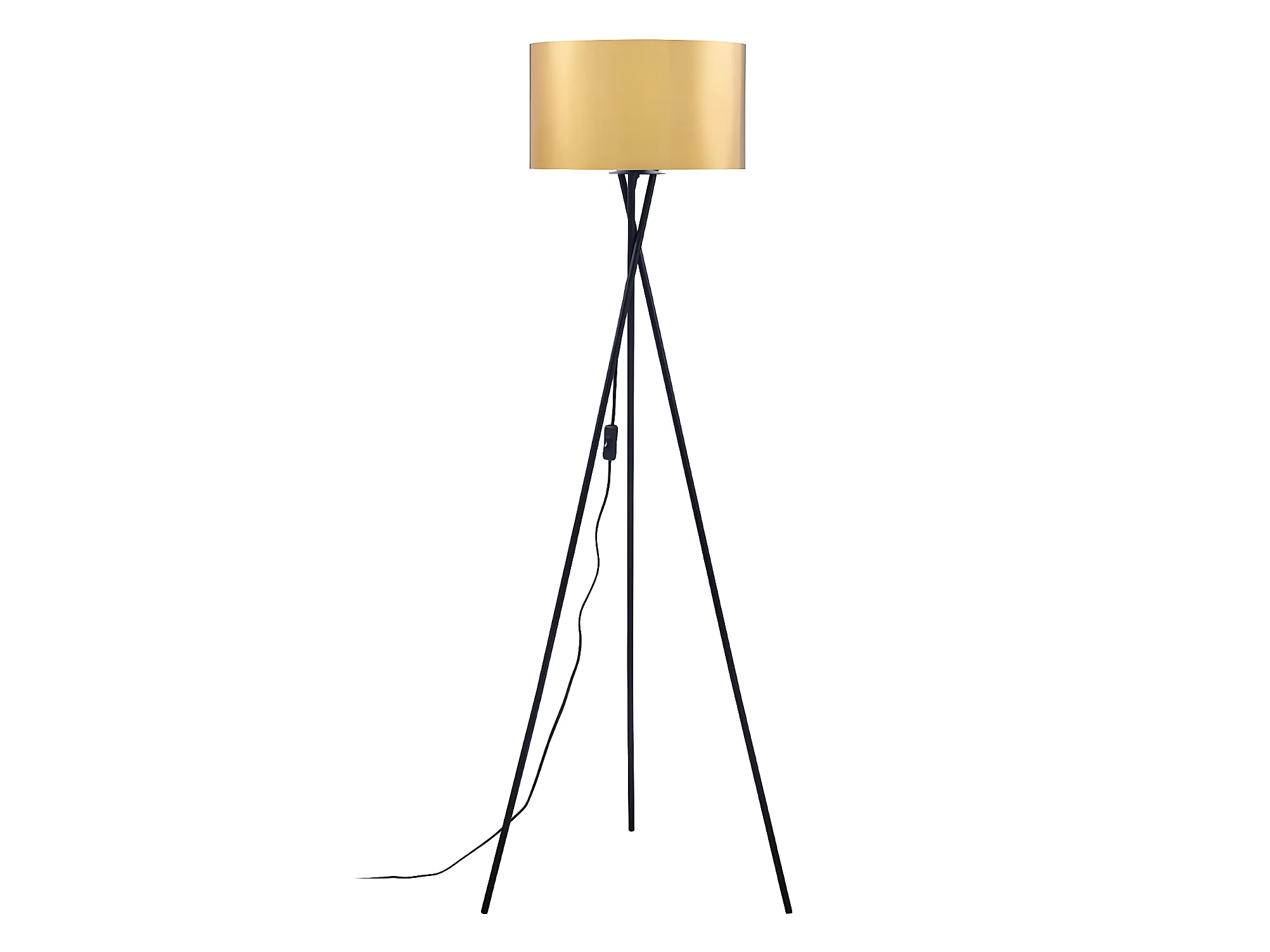 WESLEY - Lampadaire Trépied en Métal Noir Abat-Jour PVC Or