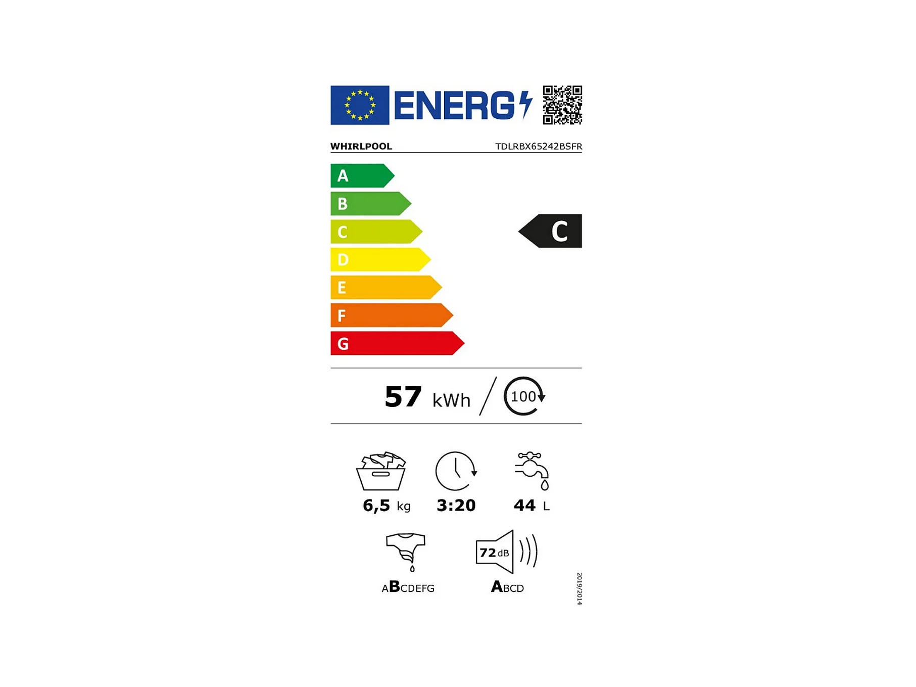 Whirlpool Lave-linge top 6.5kg 1200 tours/min blanc - TDLRBX65242BSFR