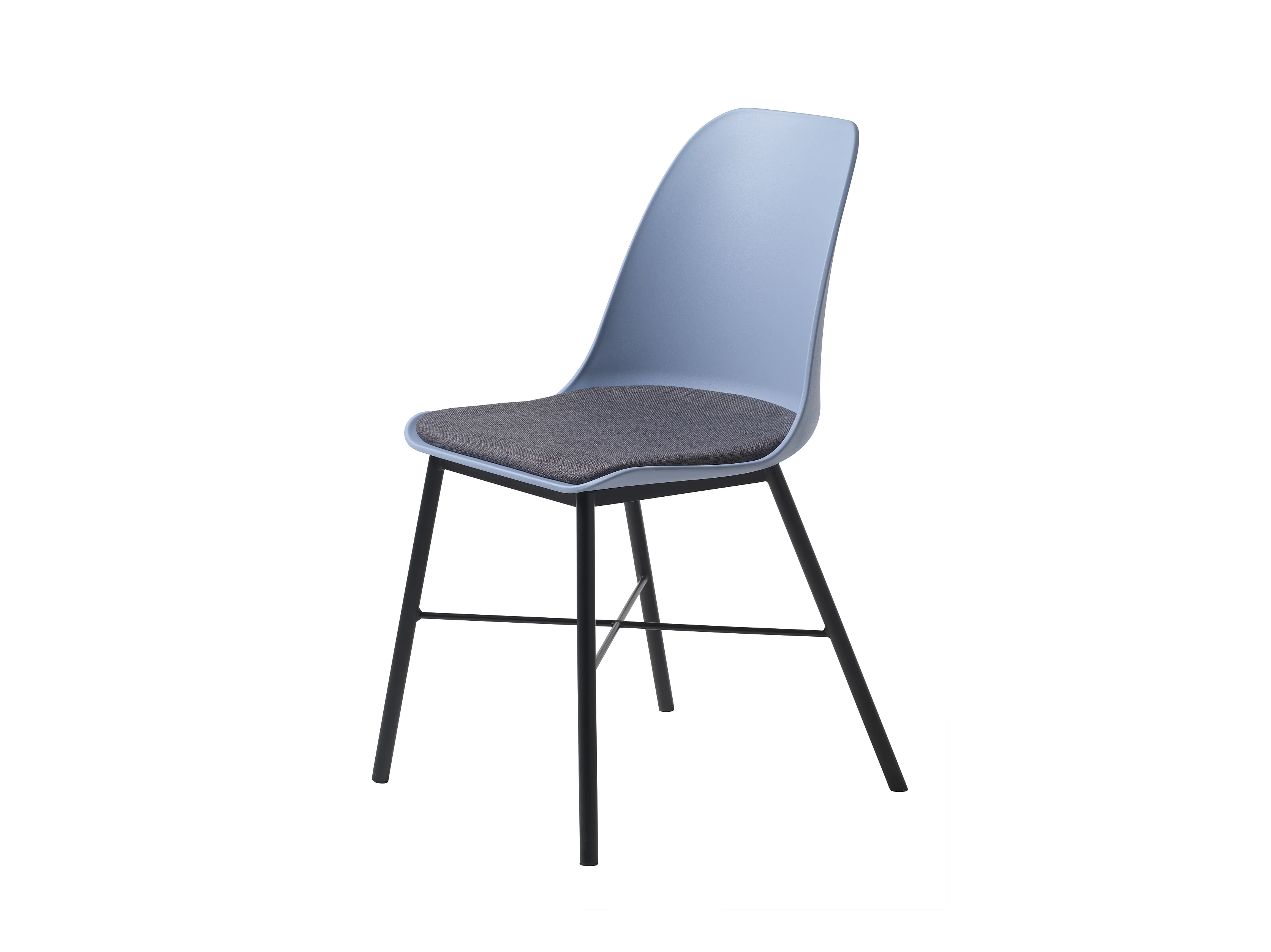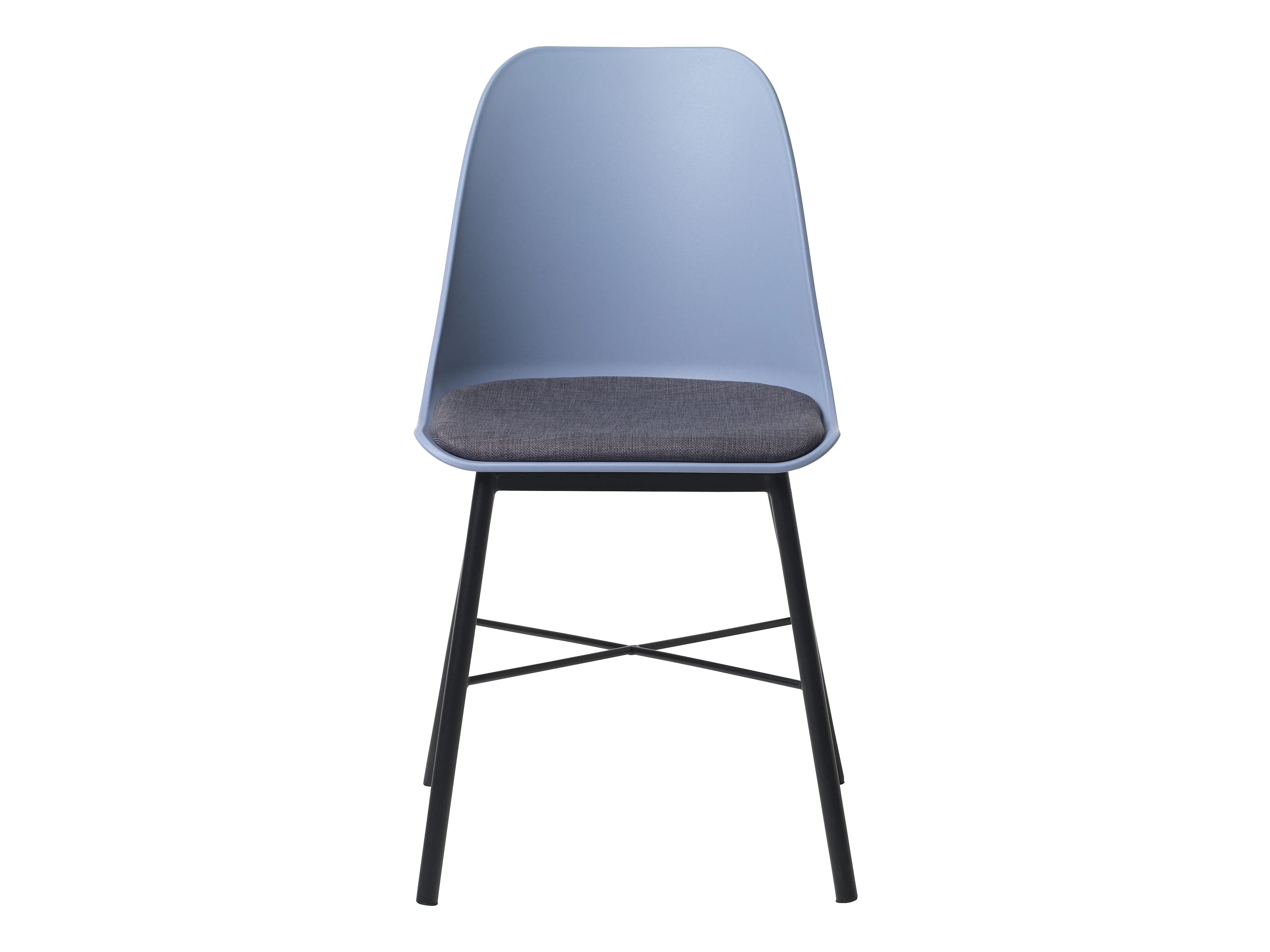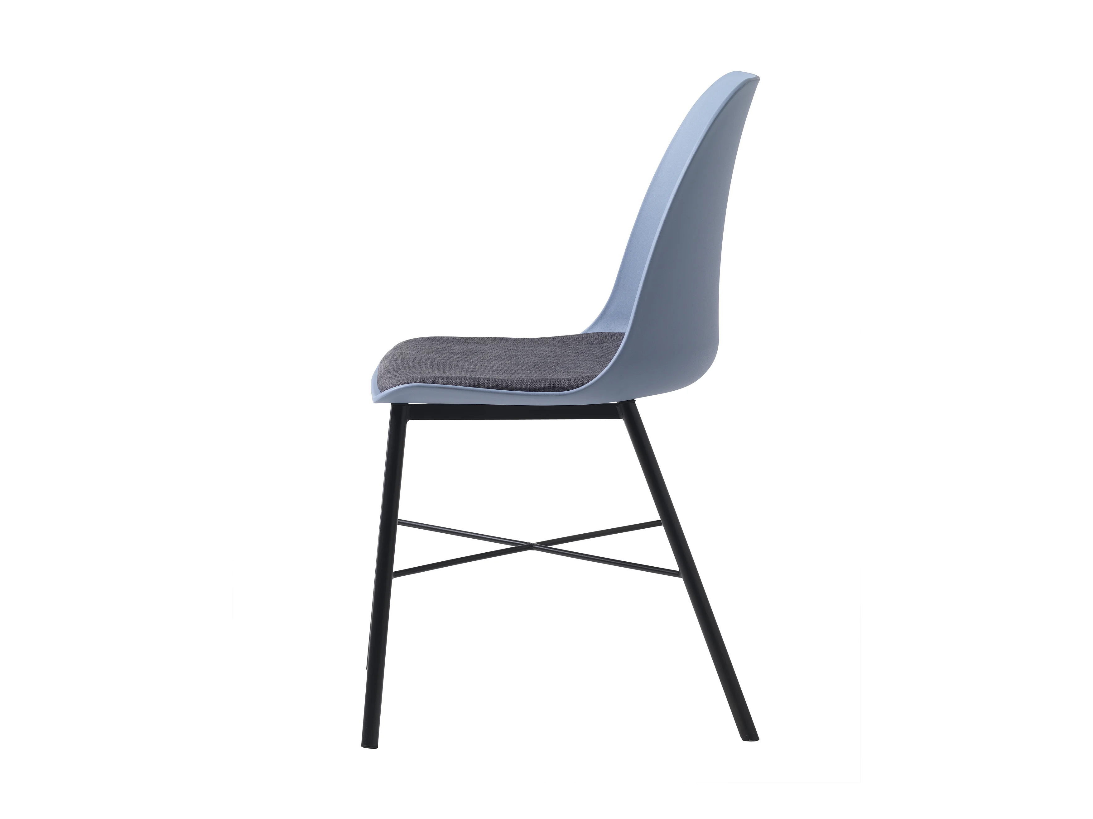 Whise Chaise de salle à manger en bleu et gris, avec structure en métal noir.