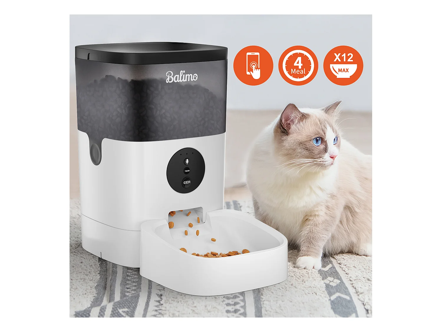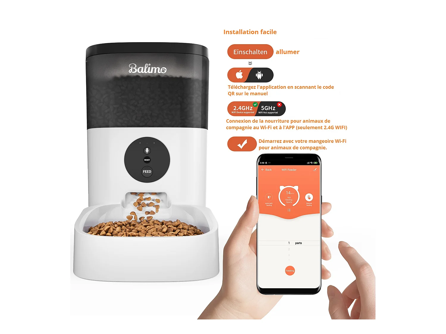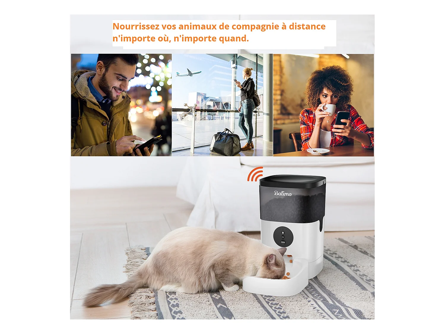 WIFI Distributeur de Croquettes Balimo 4L pour Chats/Chiens Télécommande Téléphone Portable LCD,Adaptateur Secteu /Batterie,Fonction d'Enregistrement