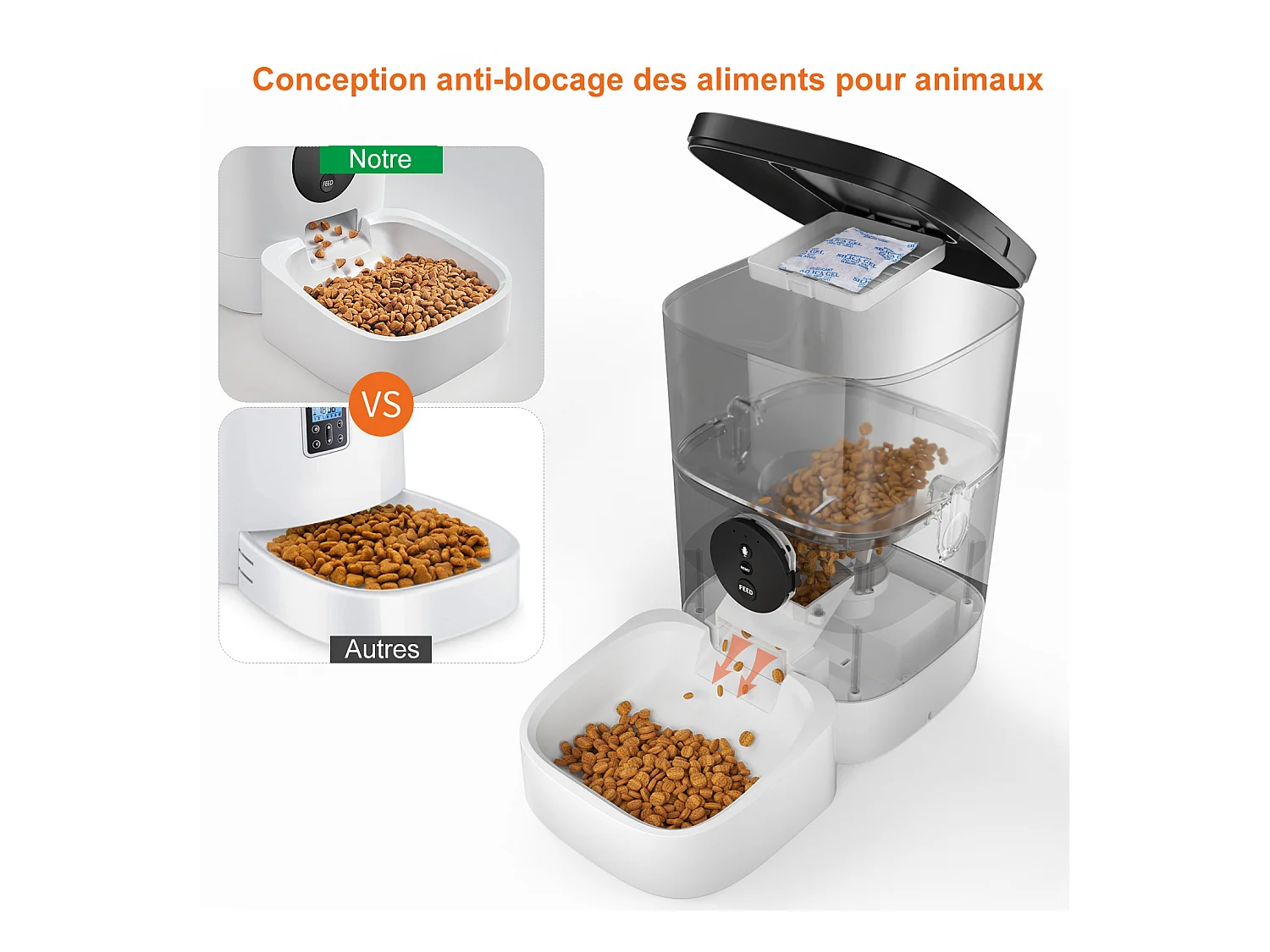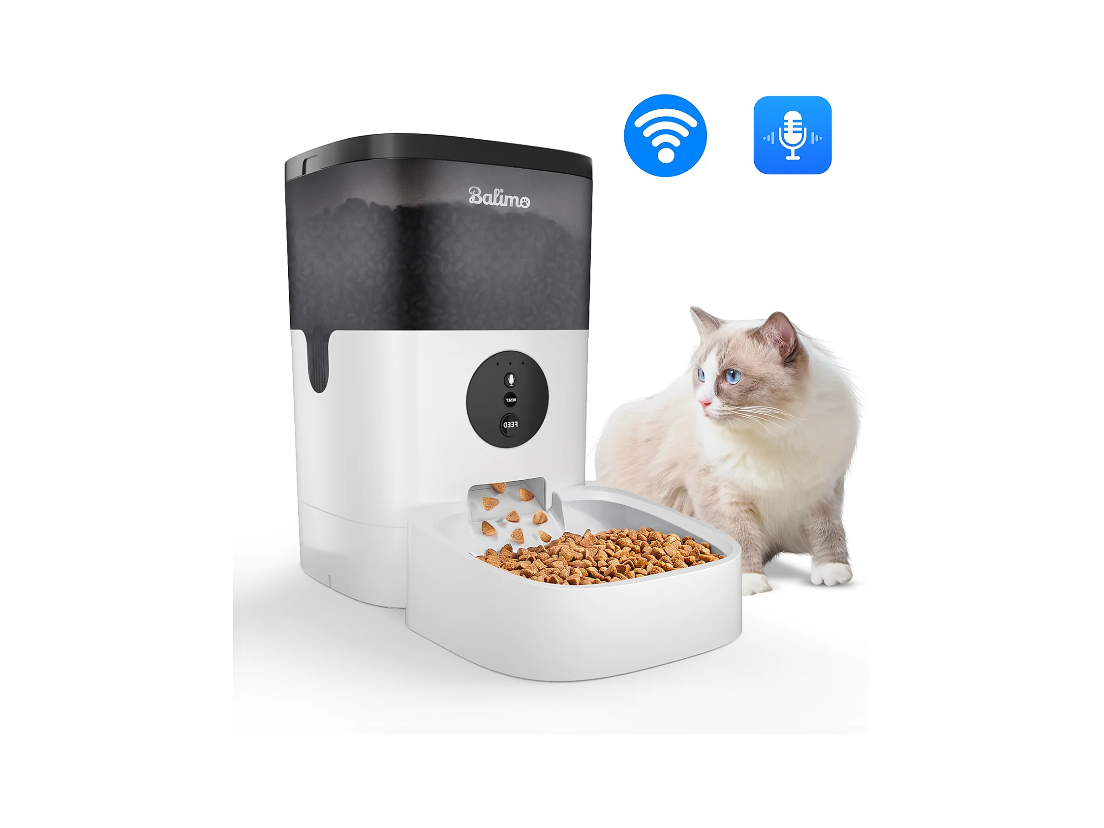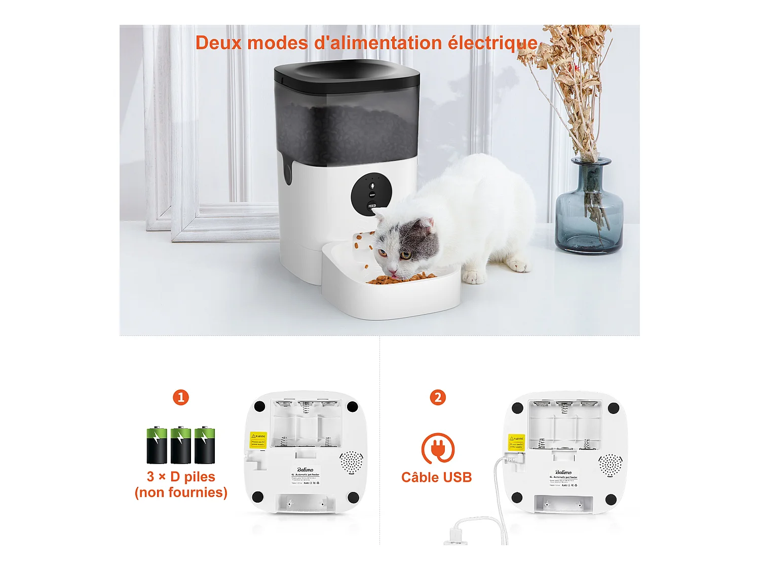 WIFI Distributeur de Croquettes Balimo 4L pour Chats/Chiens Télécommande Téléphone Portable LCD,Adaptateur Secteu /Batterie,Fonction d'Enregistrement