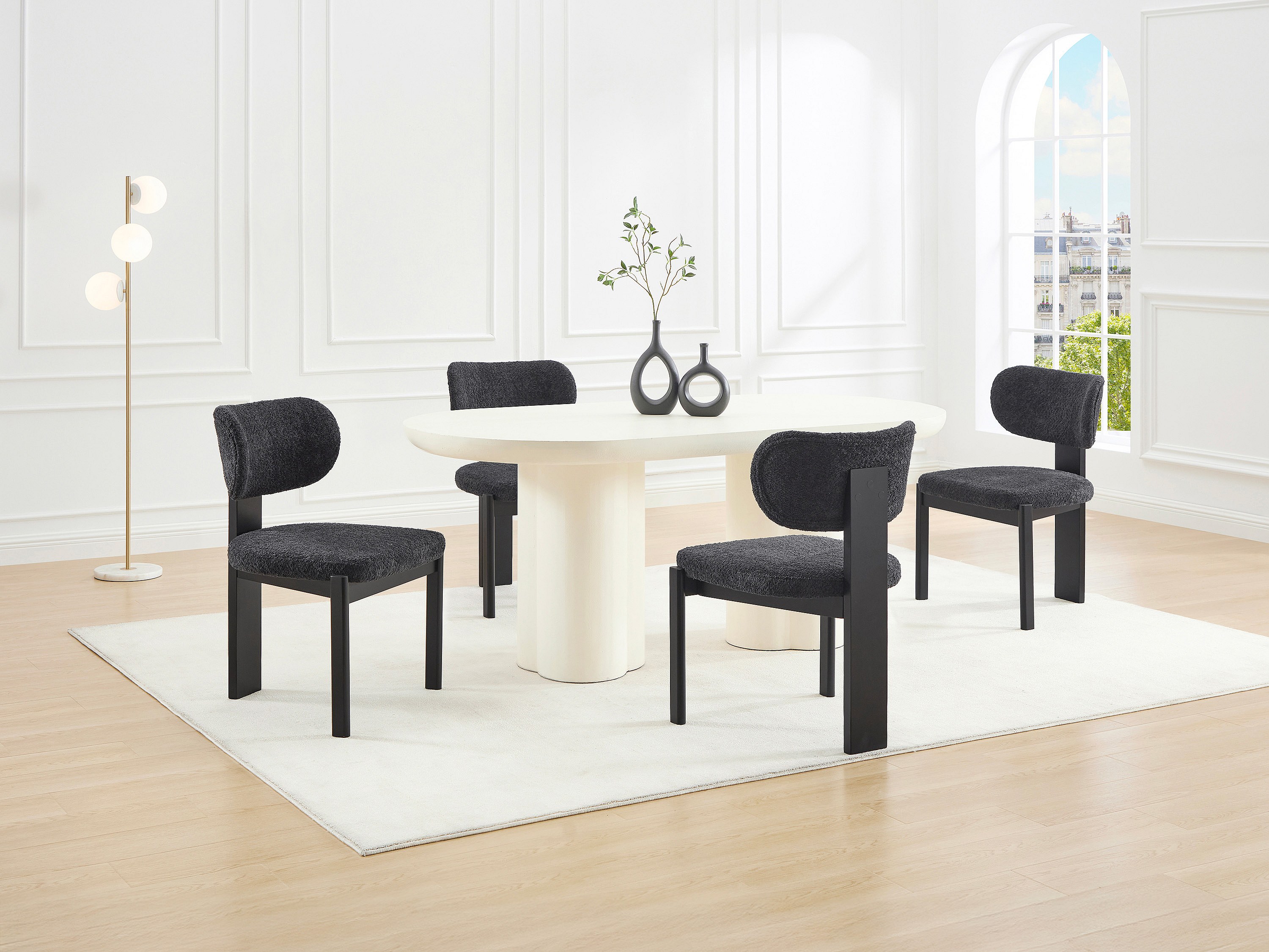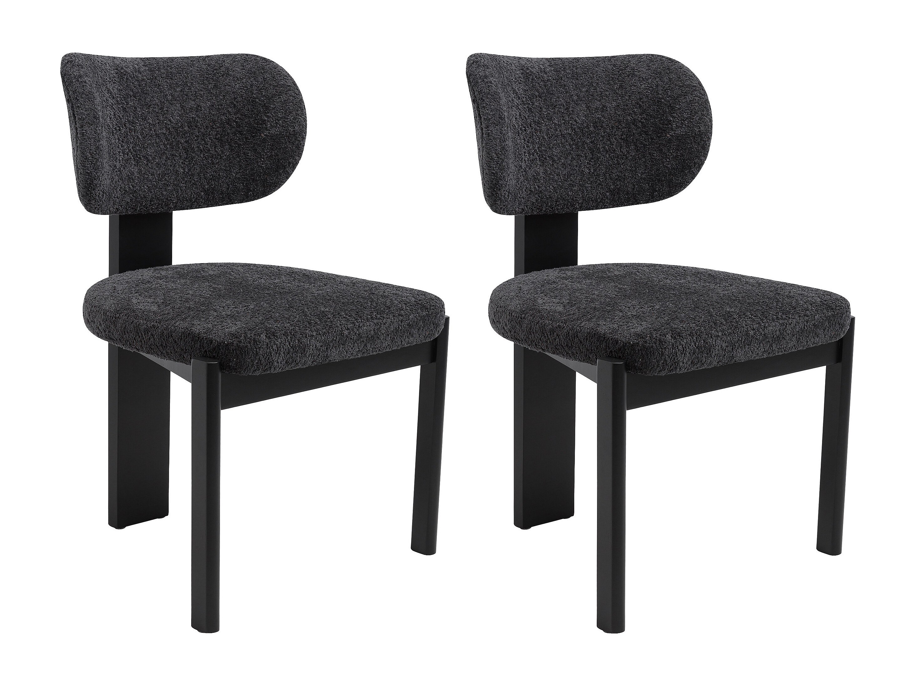Lot de 2 chaises en tissu bouclette et bois d'hévéa - Noir - WILANA