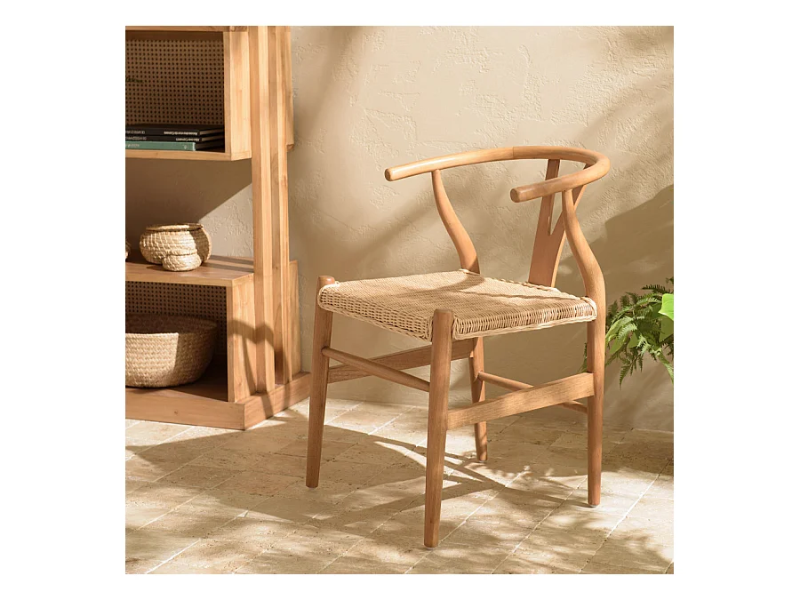 WILL - Chaise en bois de mahogany, dossier arrondi et assise en rotin