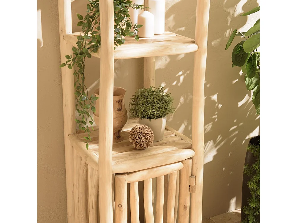 WILL - Étagère 2 niveaux 1 porte en branches de bois de teck naturel