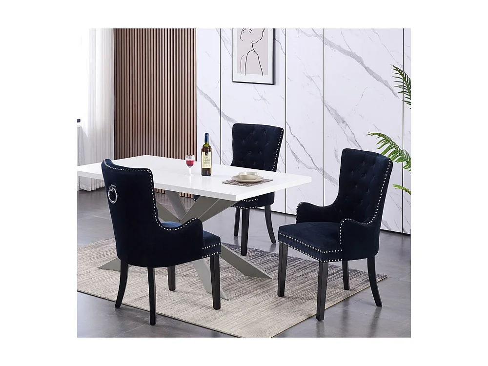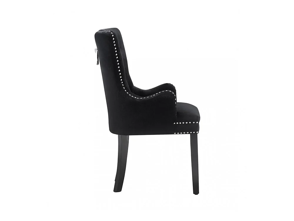 Windsor - Chaise Capitonnée en Velours - Avec Accoudoirs - Pieds en Bois - Noir