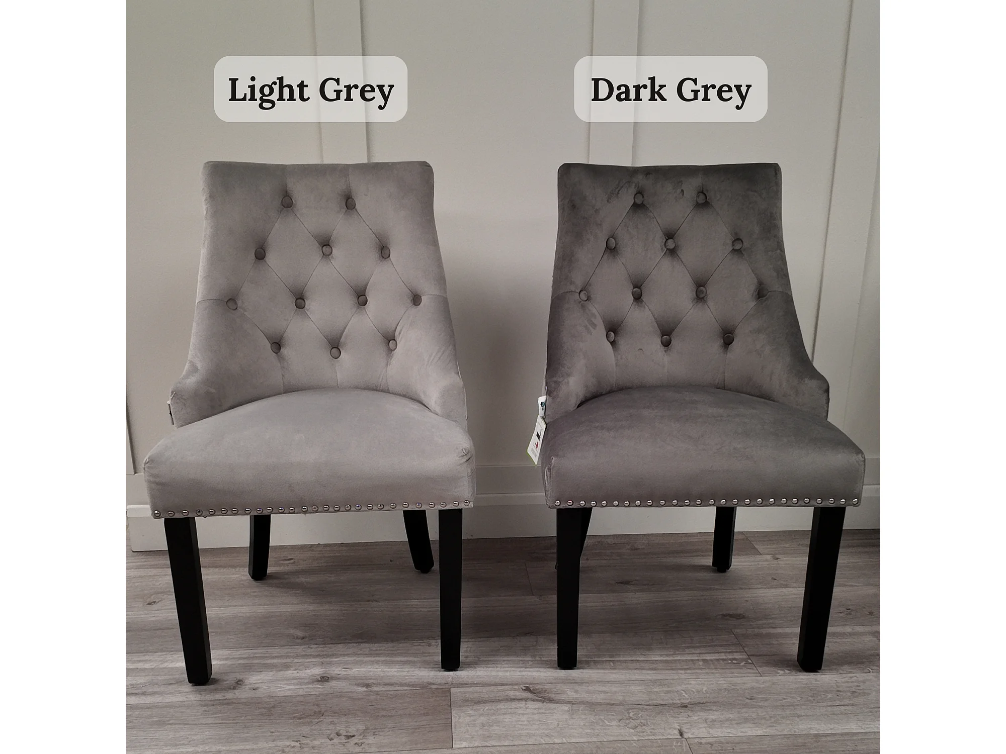 Chaise en velours gris anthracite avec dossier capitonné - ARON