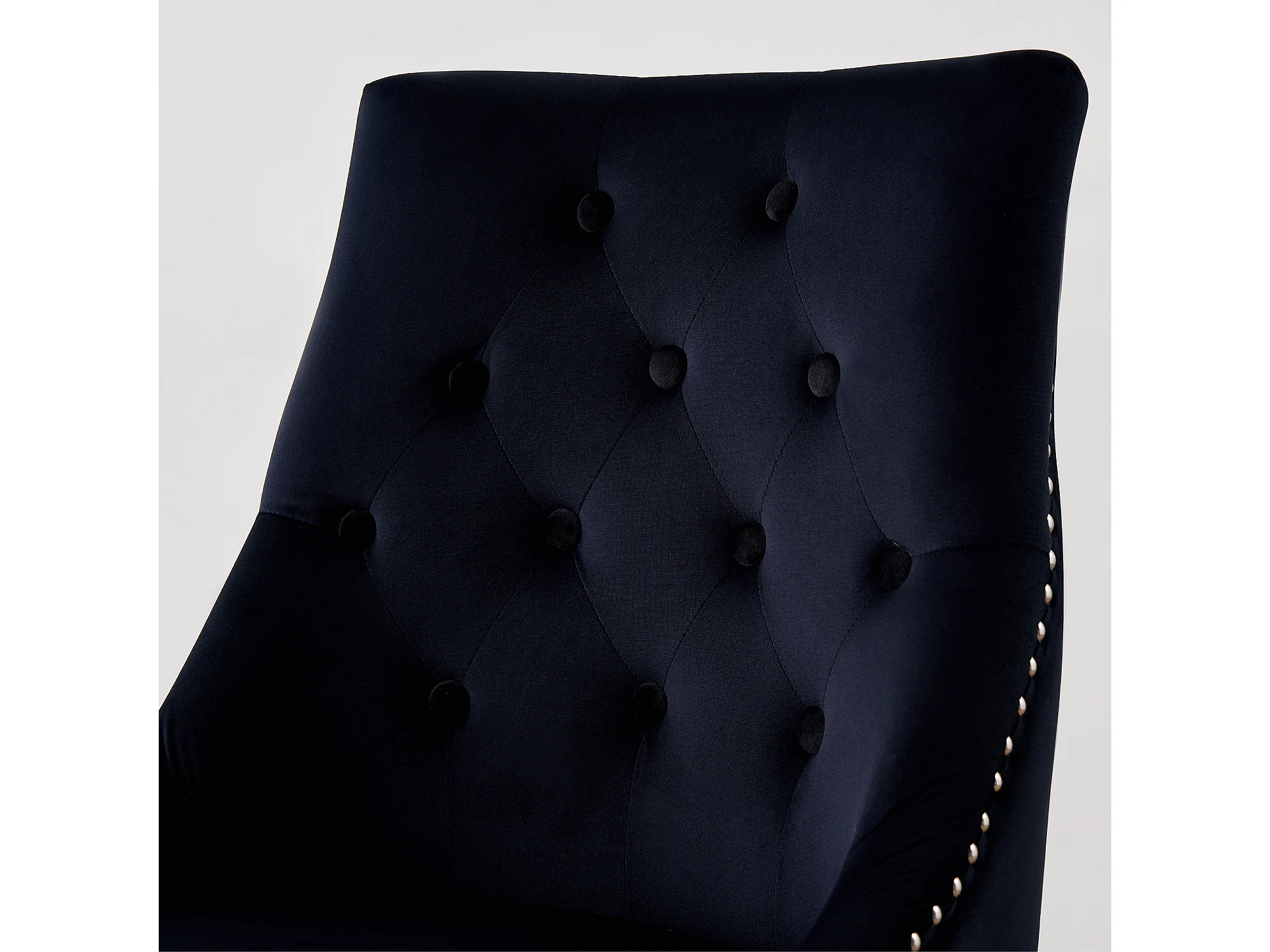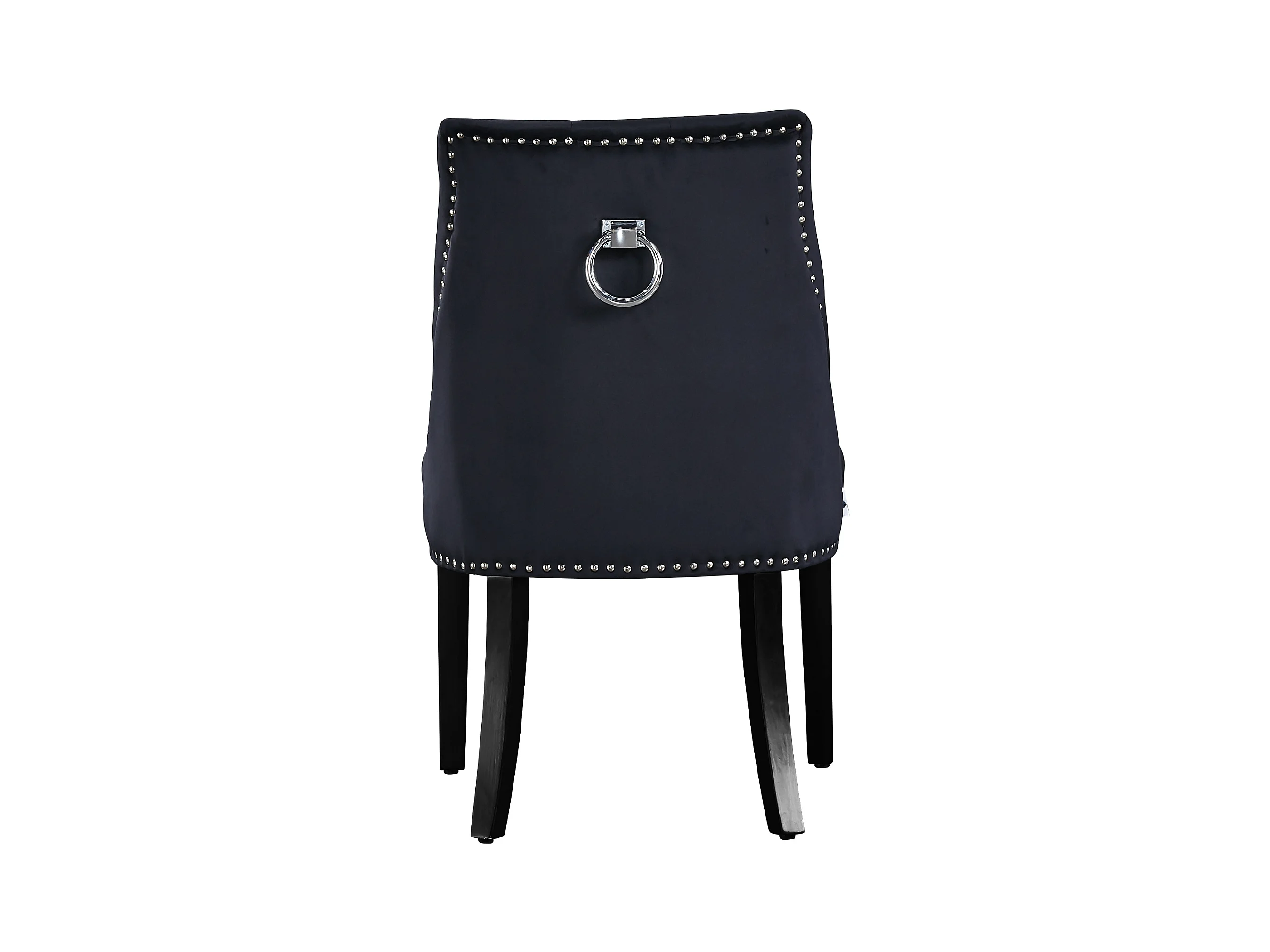 Chaise capitonnée velours avec anneau au dos et pieds métal chromé Royal - Lot de 2-Couleur Noir