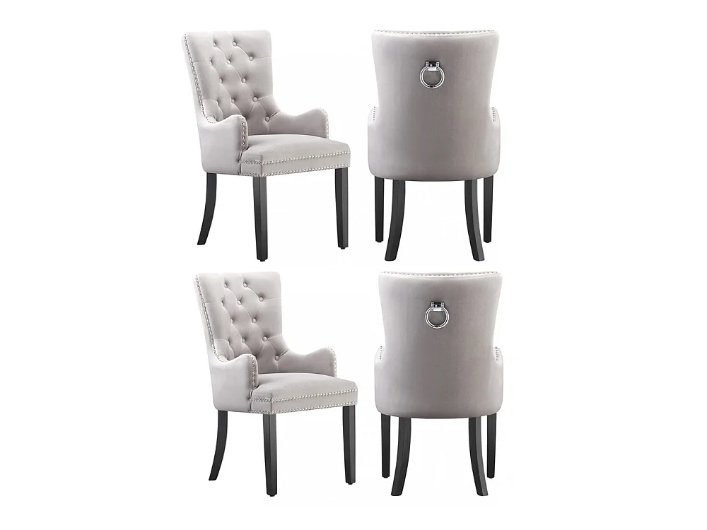 Windsor - Lot de 4 Chaises Capitonnée en Velours - Avec Accoudoirs - Pieds en Bois - Gris Clair