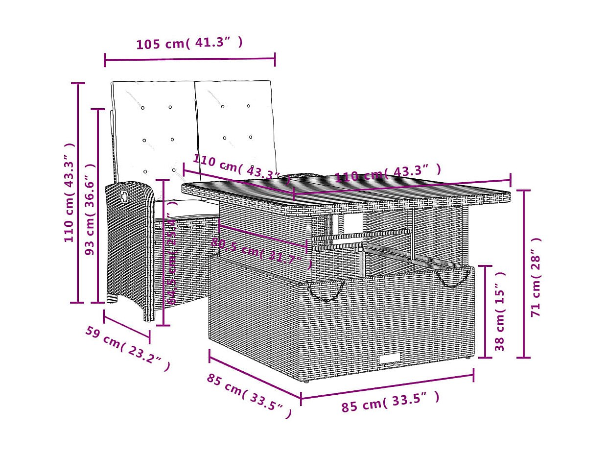 Wise Ensemble à manger de jardin et coussins 2 pcs gris rotin