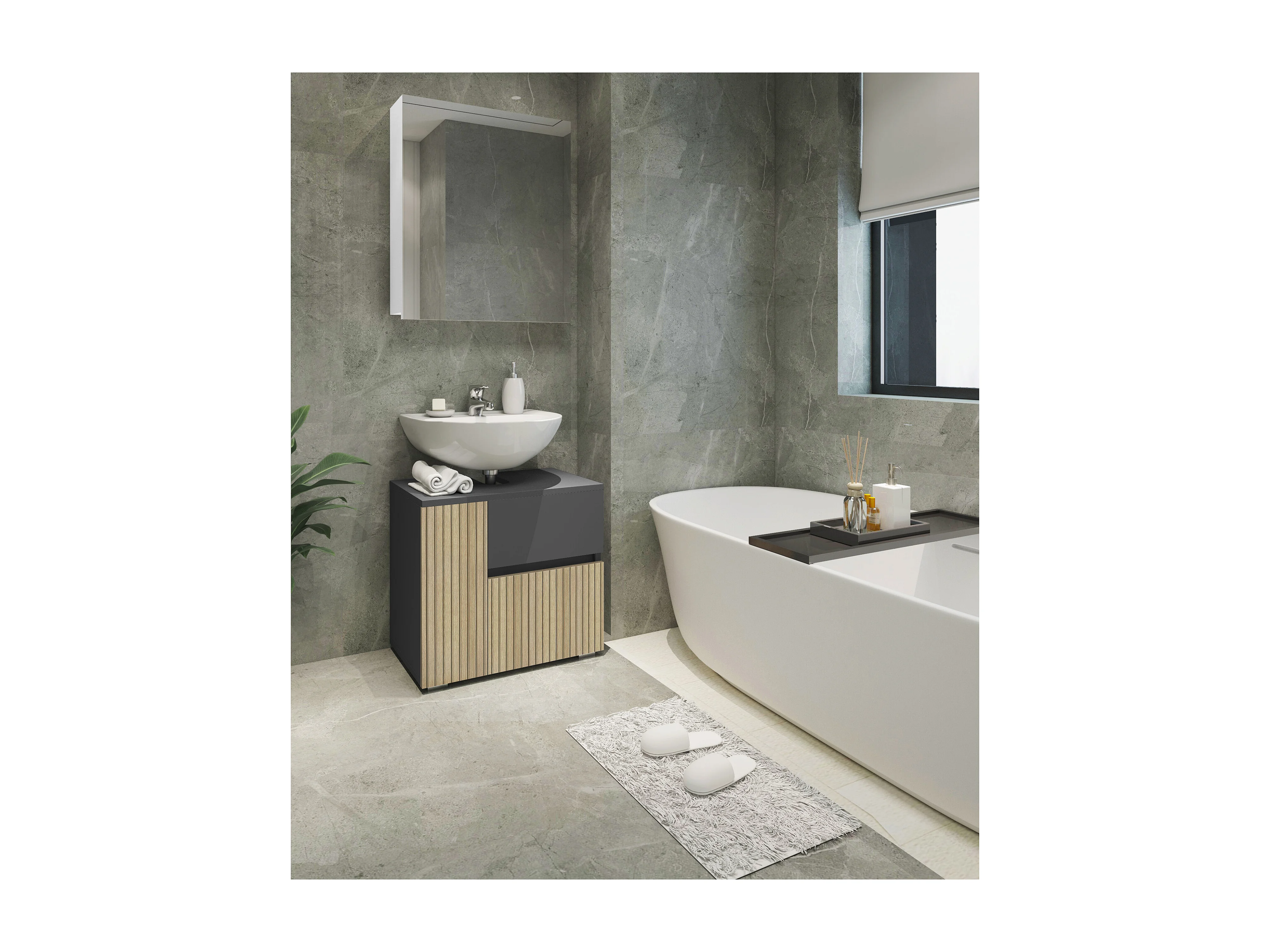 Wisla | Armoire évier avec 1 porte et 1 tiroir 1 abattant en anthracite