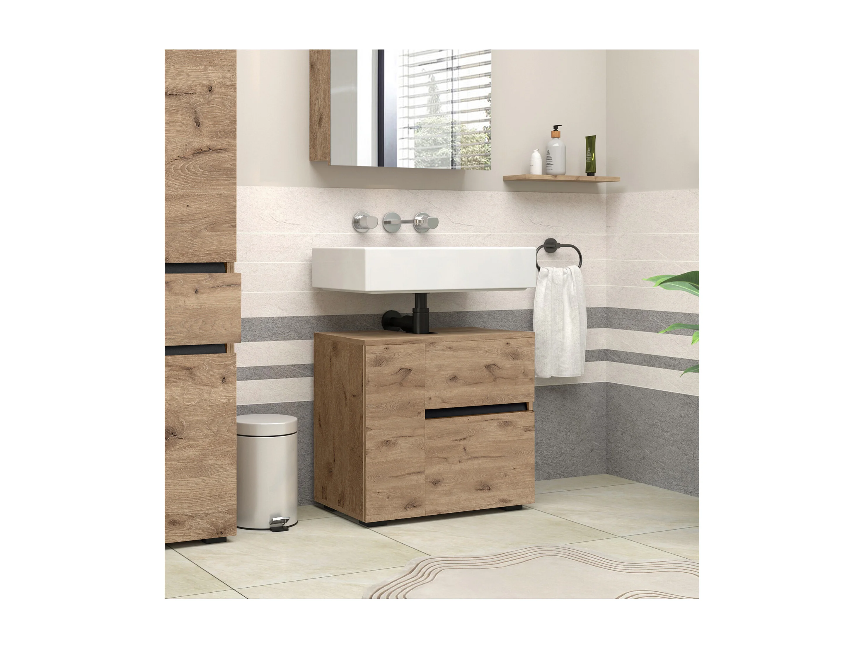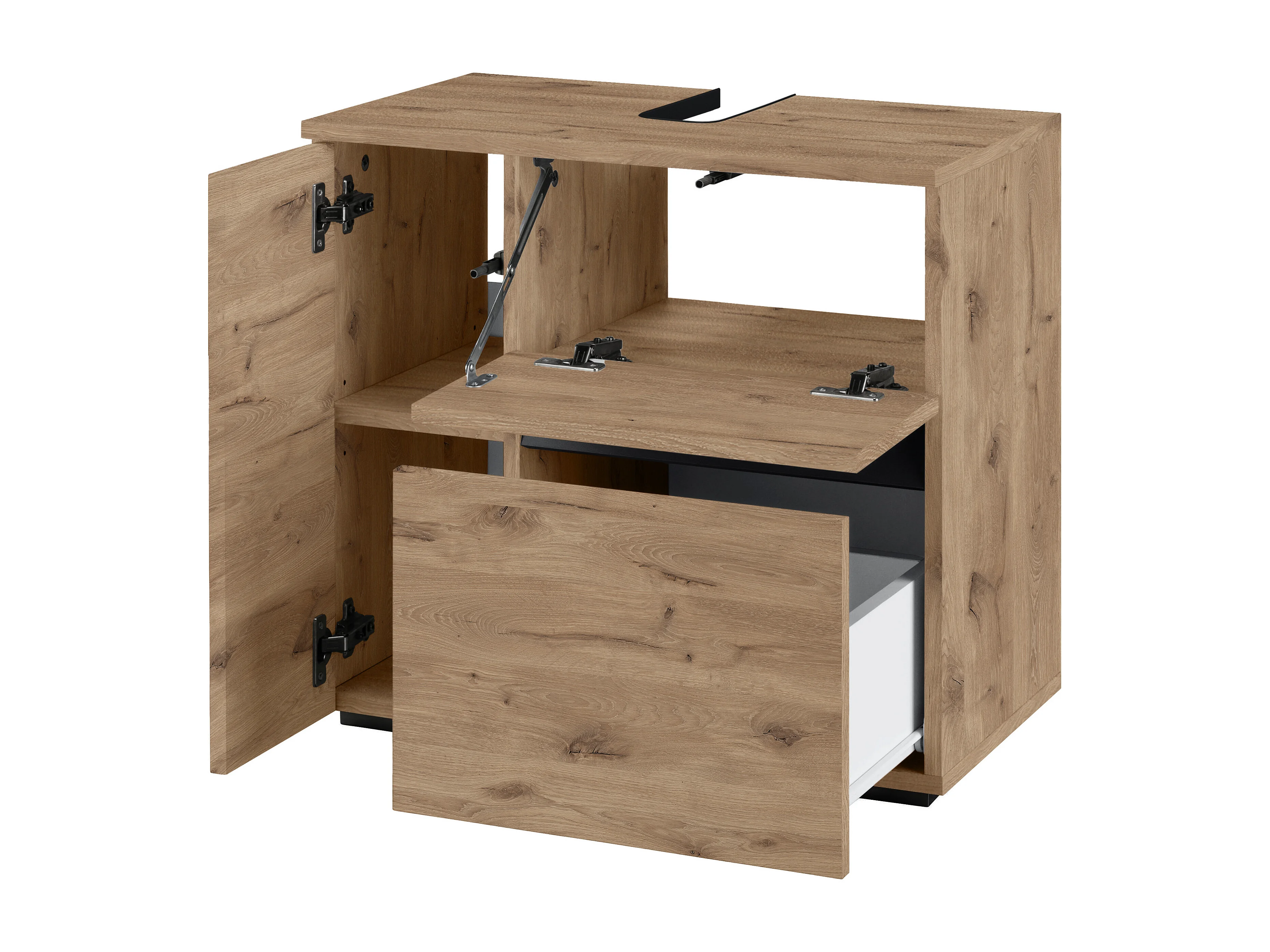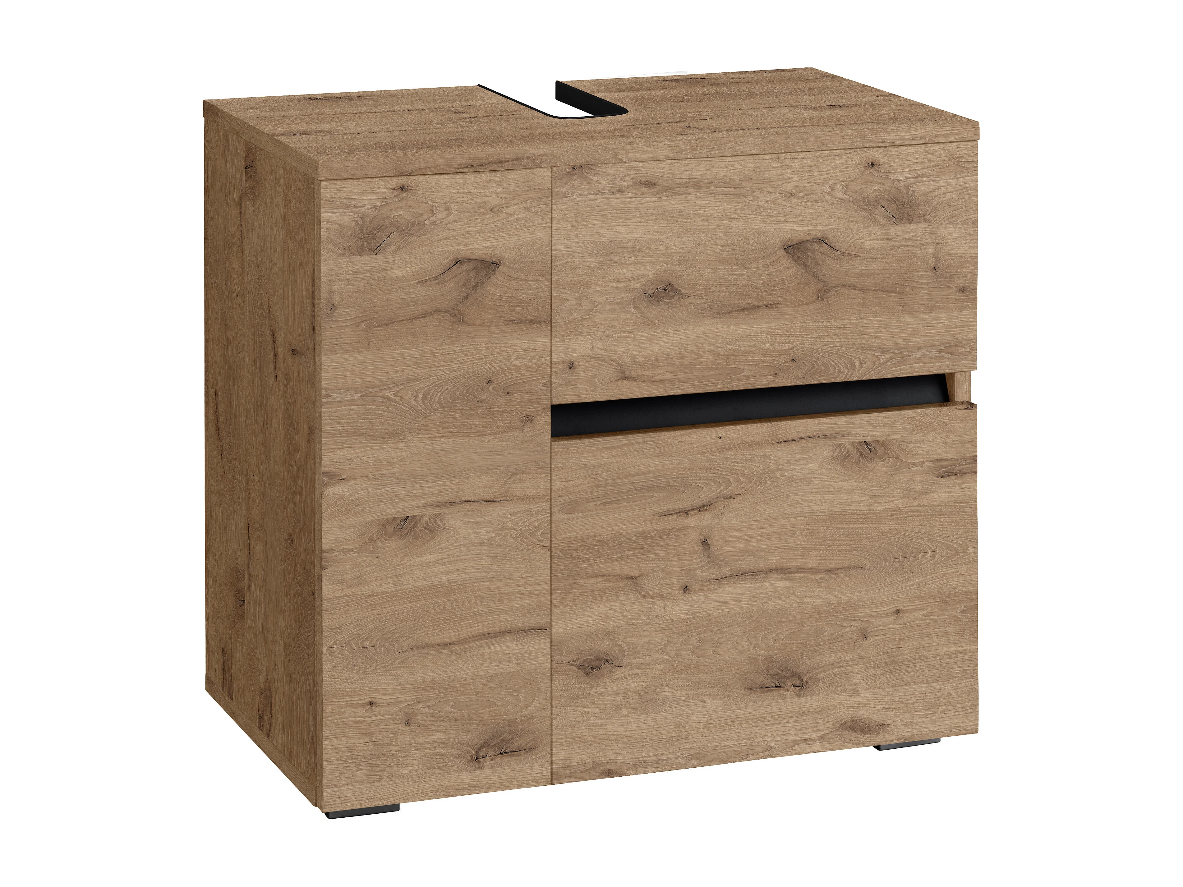 Wisla | Meuble évier avec 1 porte et 1 tiroir 1 abattant aspect chêne