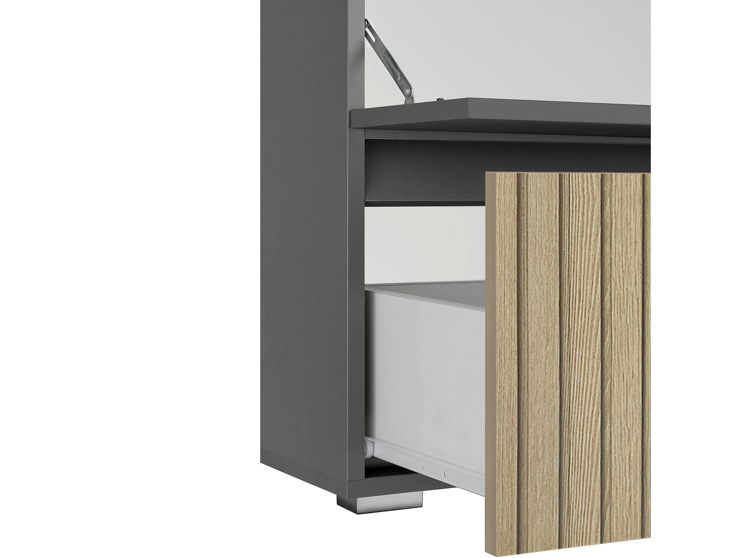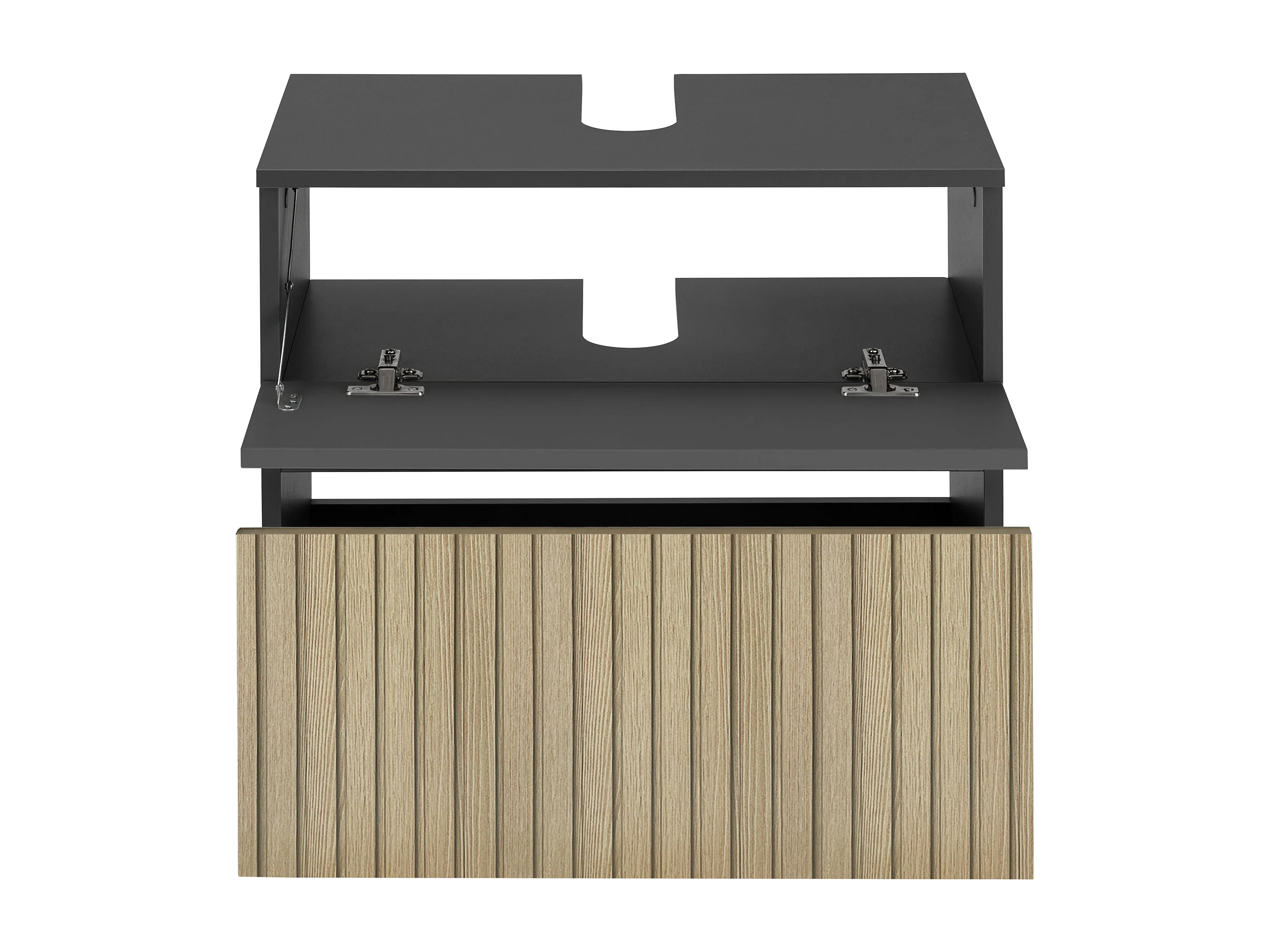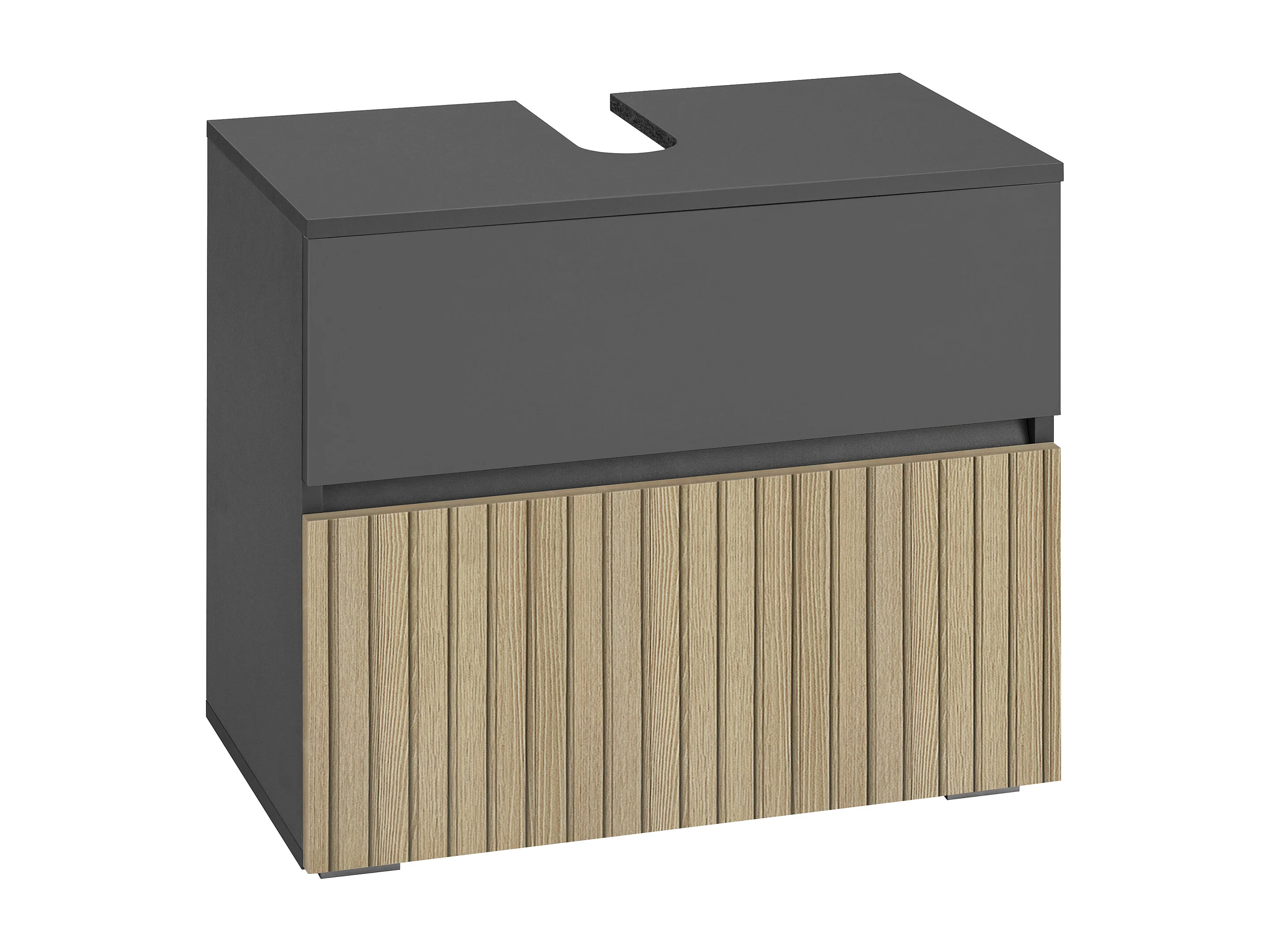 Wisla | Meuble évier avec 1 rabat 1 tiroir aspect bois anthracite