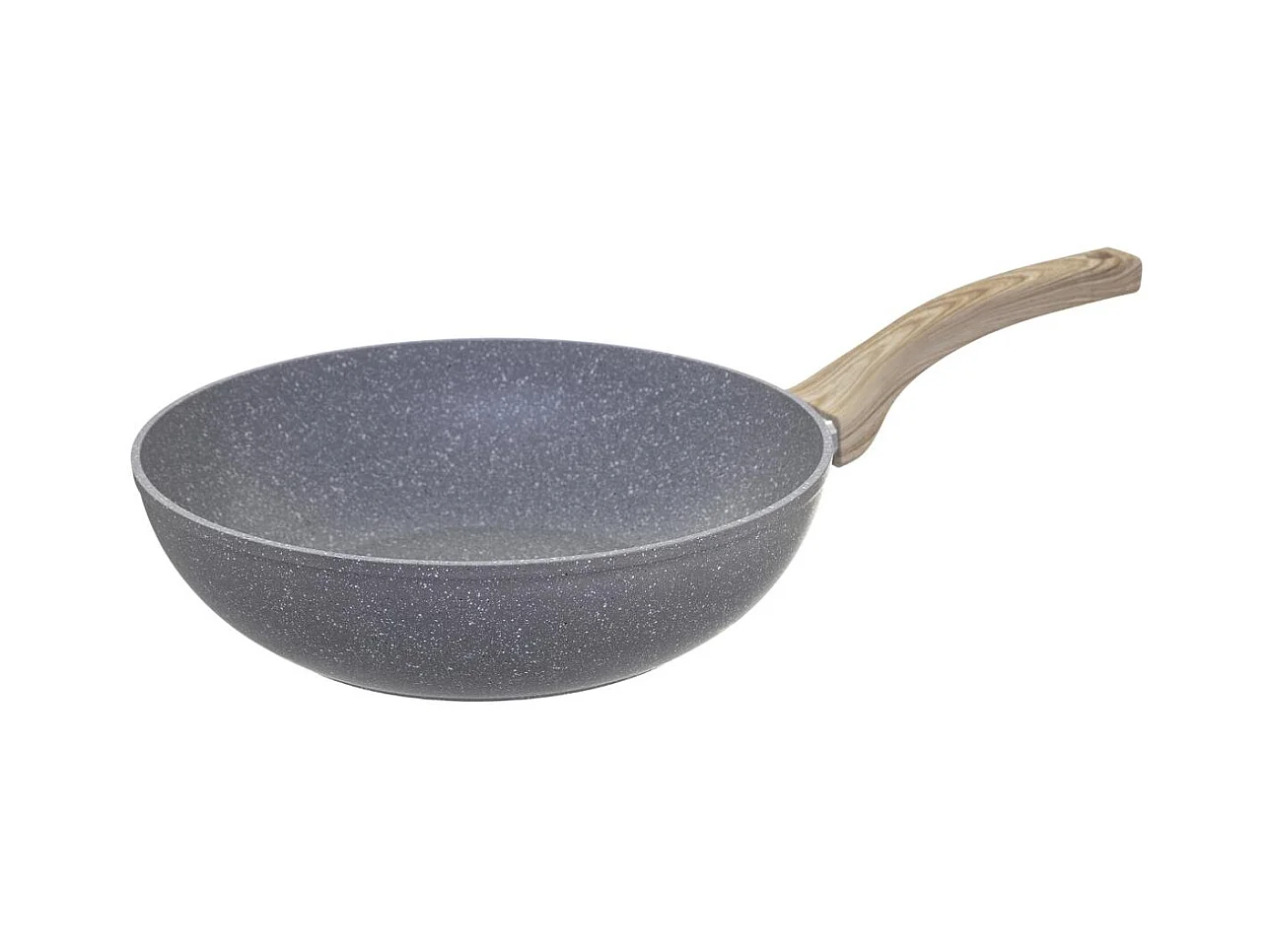 Wok en aluminium induction antiadhésif 28 cm ONYX avec poignée imitation bois revêtement pierre 5 couches