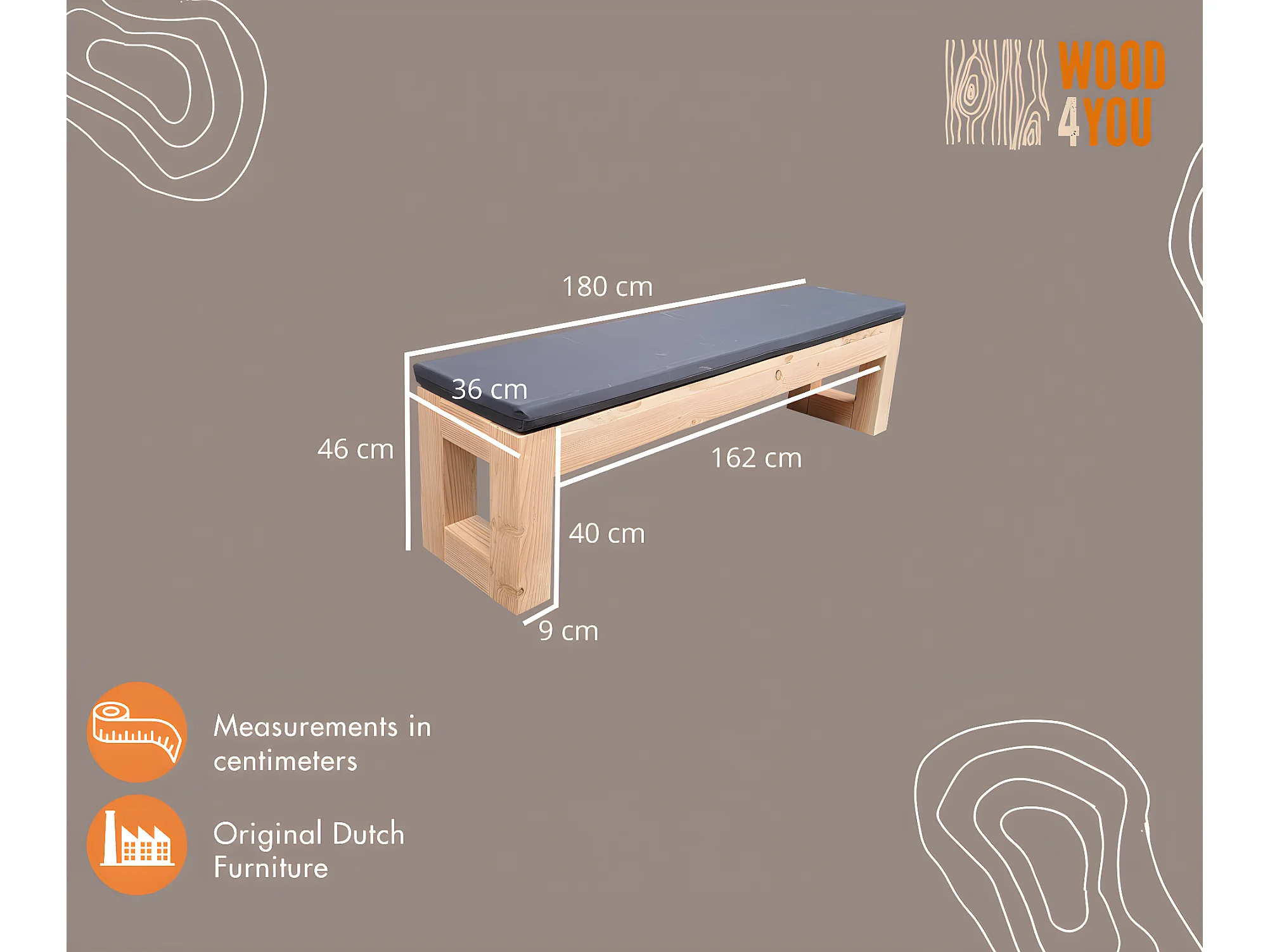 Wood4you - Banc de jardin Boston 180Lx45Hx38D cm avec coussin