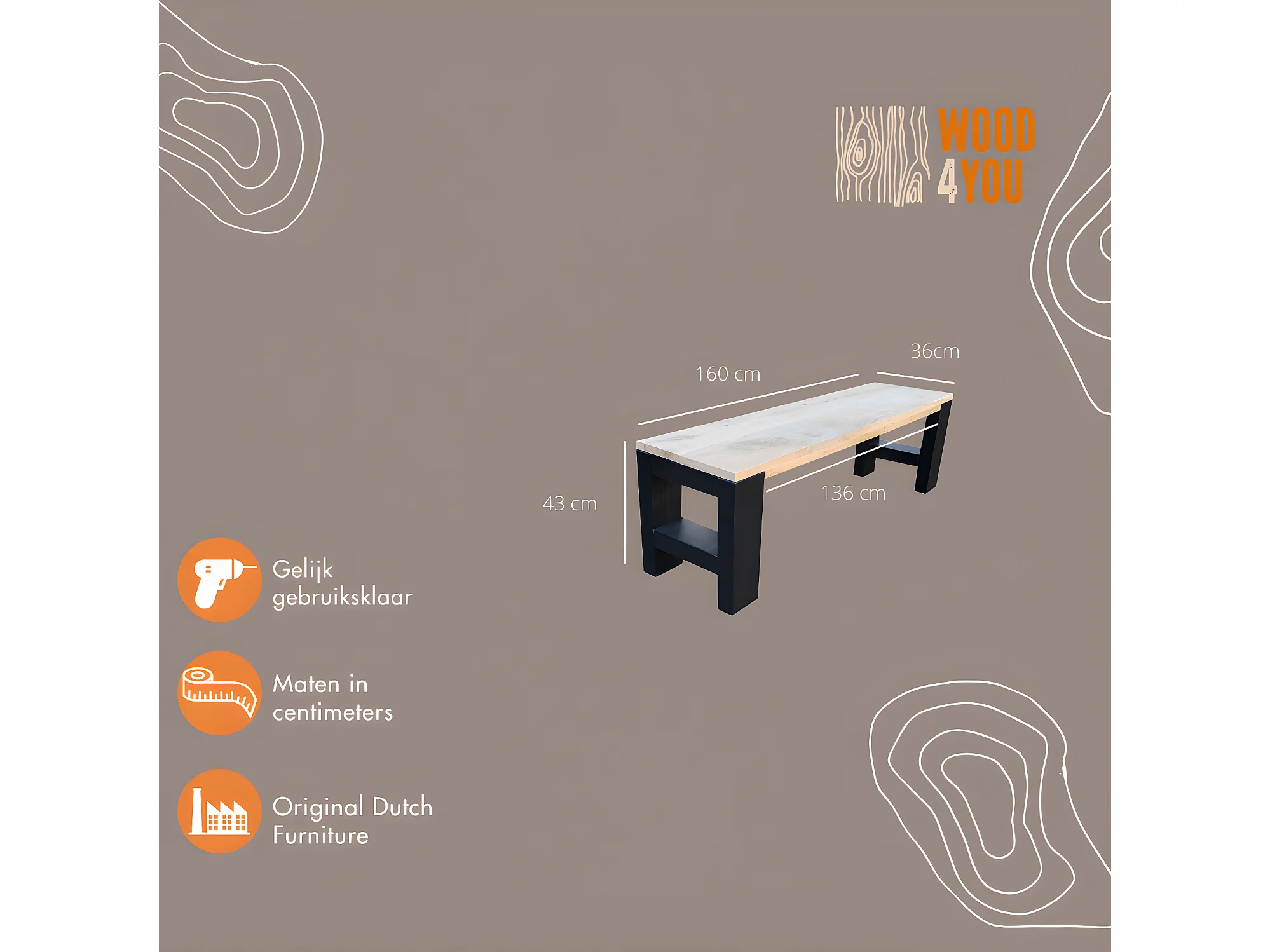 Wood4you - Banc Seattle - 160Lx40Hx38D cm noir