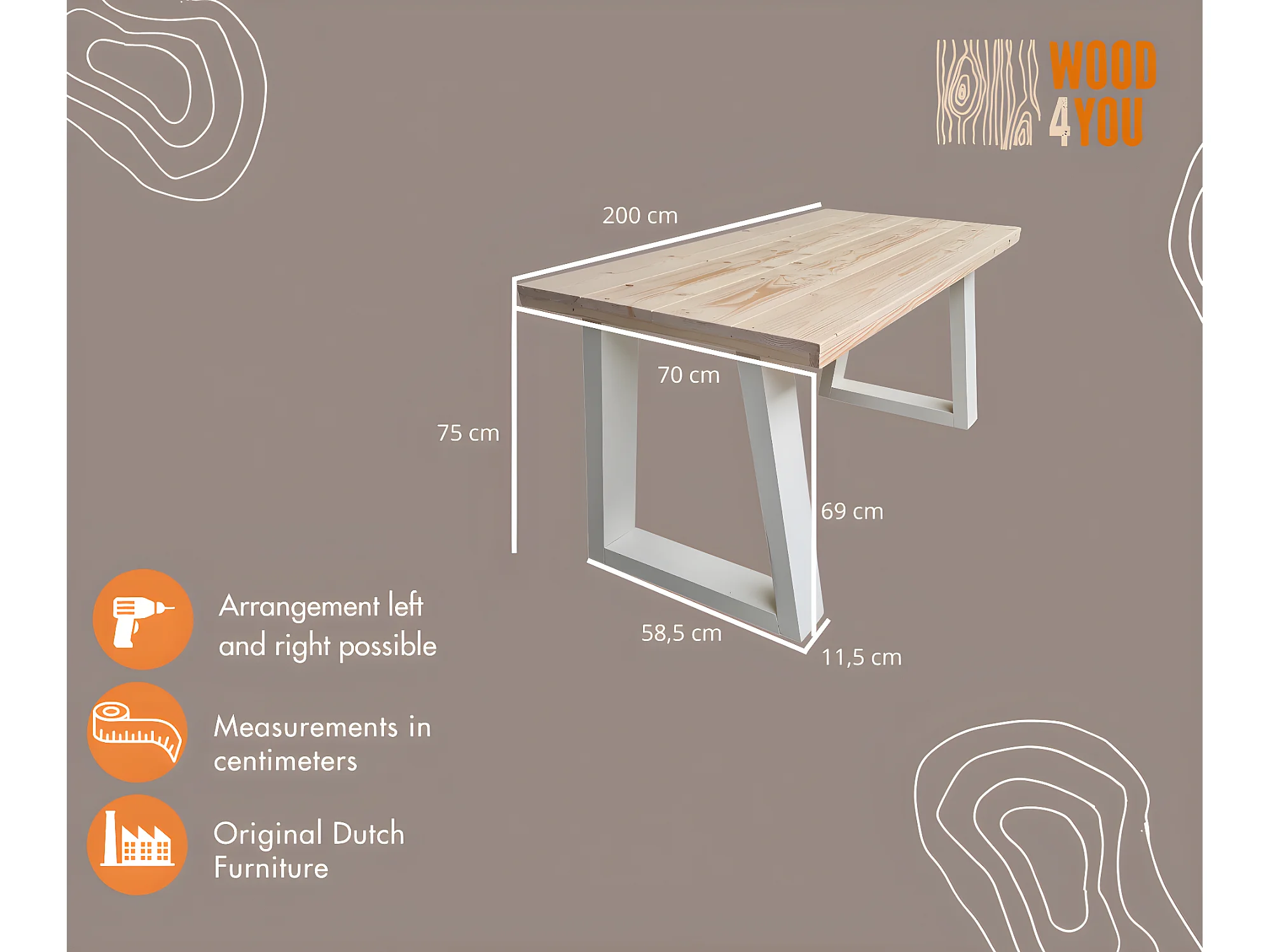 Wood4you - Bureau - Bois d'épicéa de Vancouver 200Lx70Px75H Blanc