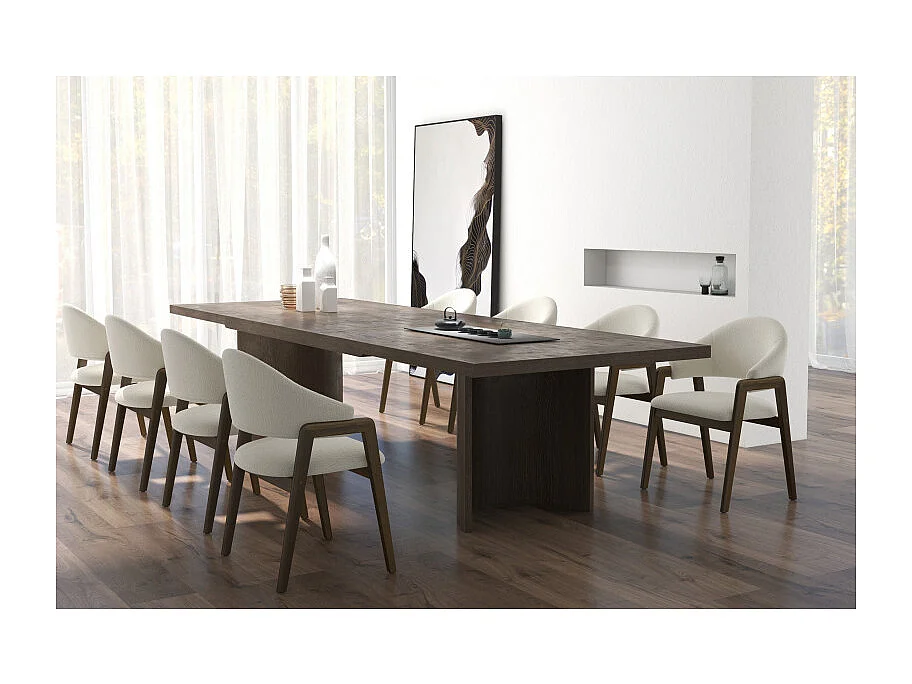 WOOL-Chaise en Frêne patiné noyer et Tissu Curly Ecru (x2)