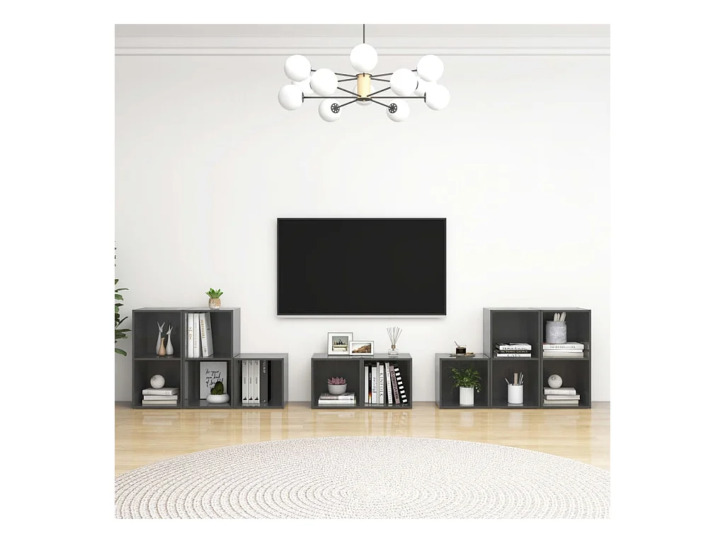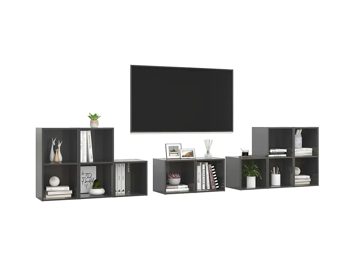 Wylie Ensemble de meubles TV 8 pcs Gris brillant Bois d'ingénierie