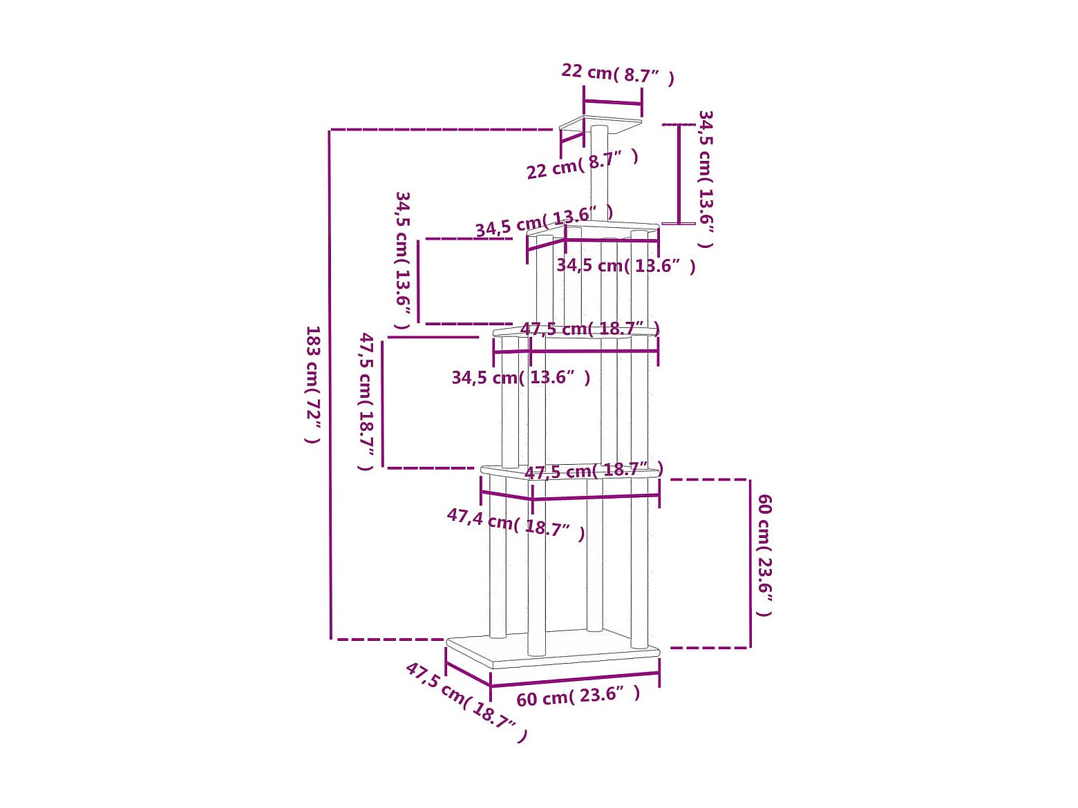 Arbre à chat avec griffoirs en sisal gris clair 183 cm OFR94109 BonneVie Meuble