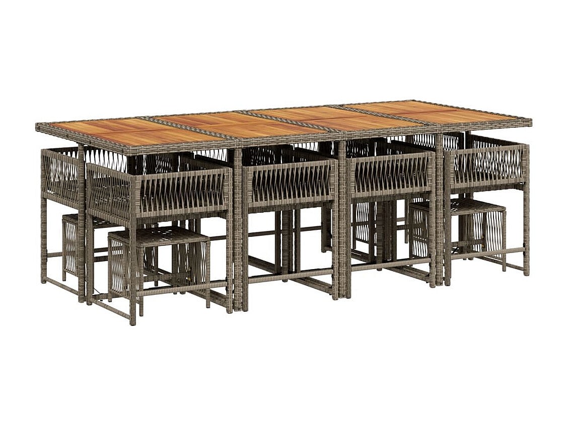 Xeli Ensemble à manger de jardin coussins 13 pcs gris résine tressée