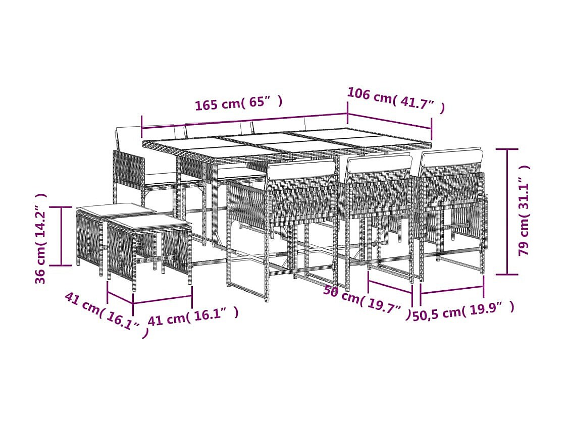 Xeli Ensemble à manger de jardin et coussins 11 pcs beige poly rotin