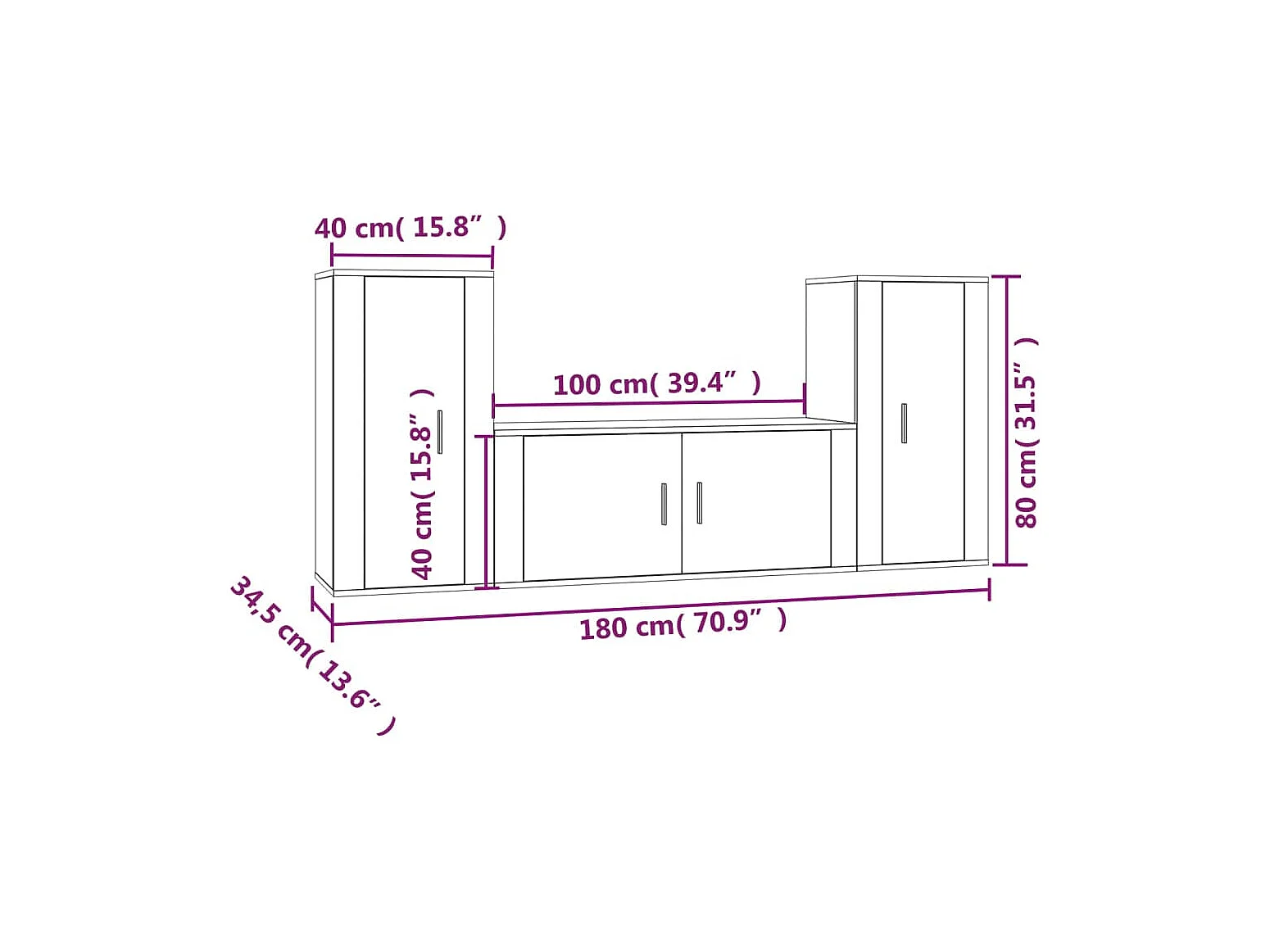 Xira Ensemble de meubles TV 3 pcs Sonoma gris Bois d'ingénierie