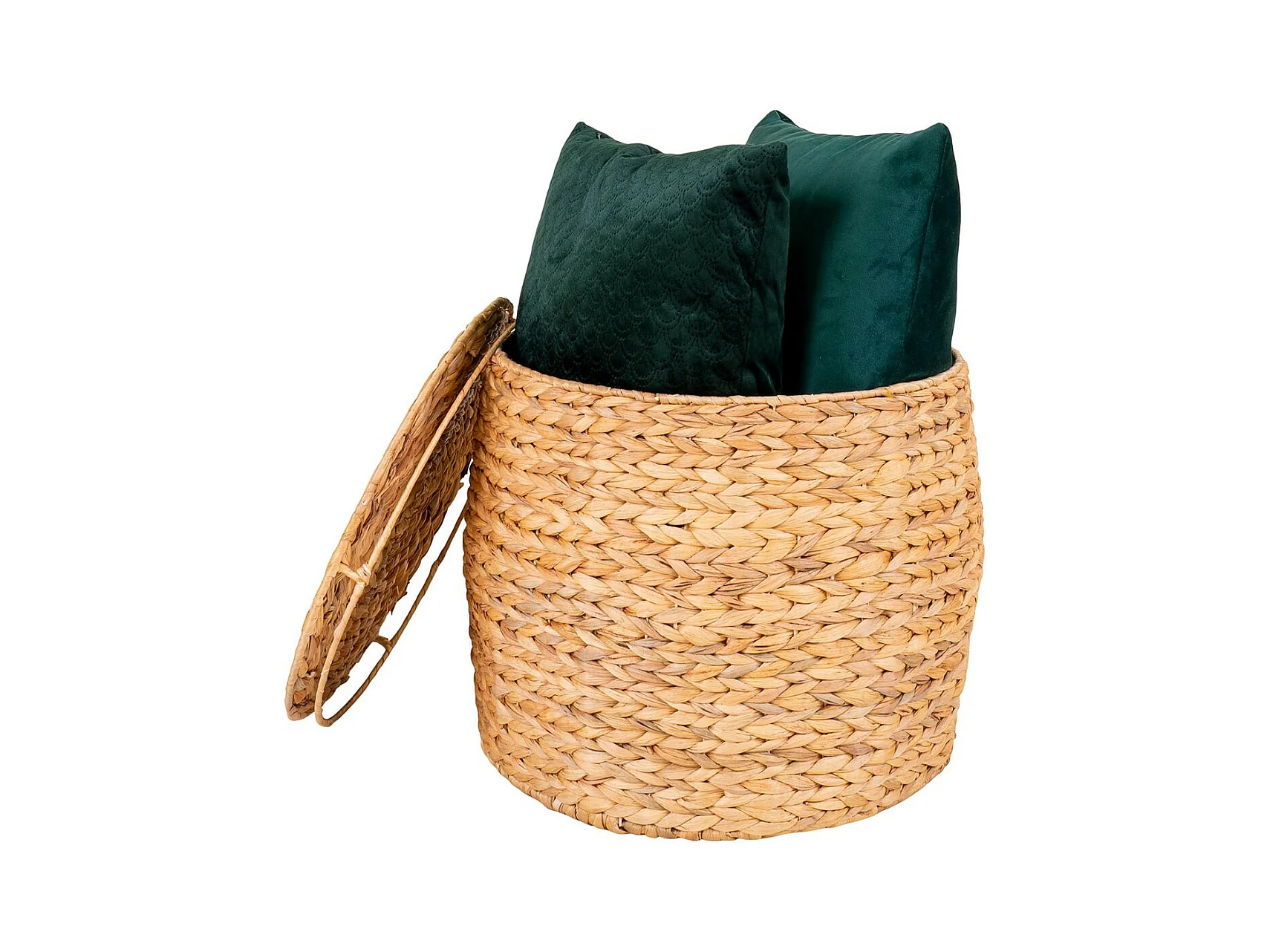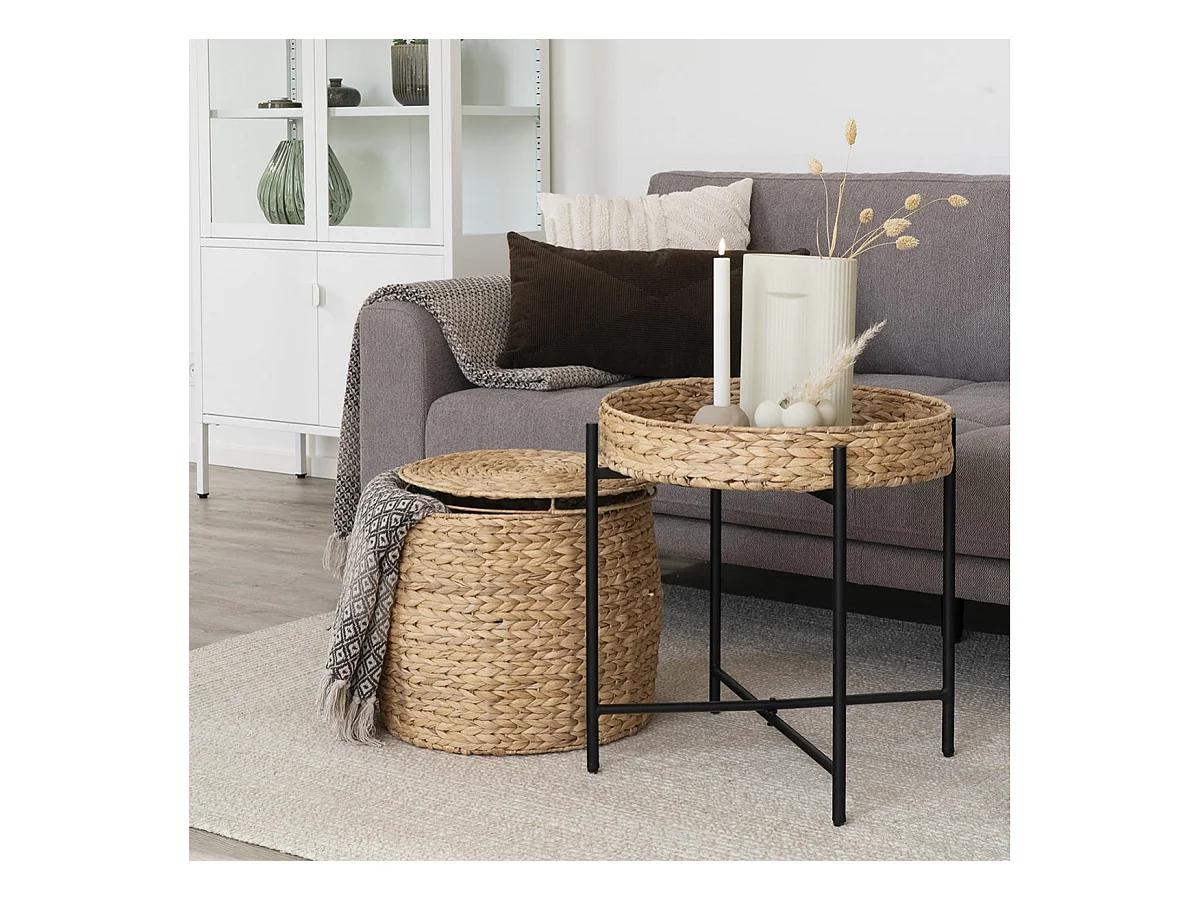 YACINE - Table d'appoint Fonction Coffre de Rangement en Jacinthe Tressée