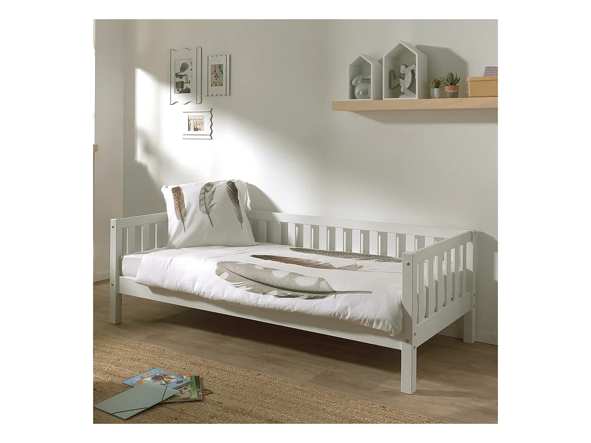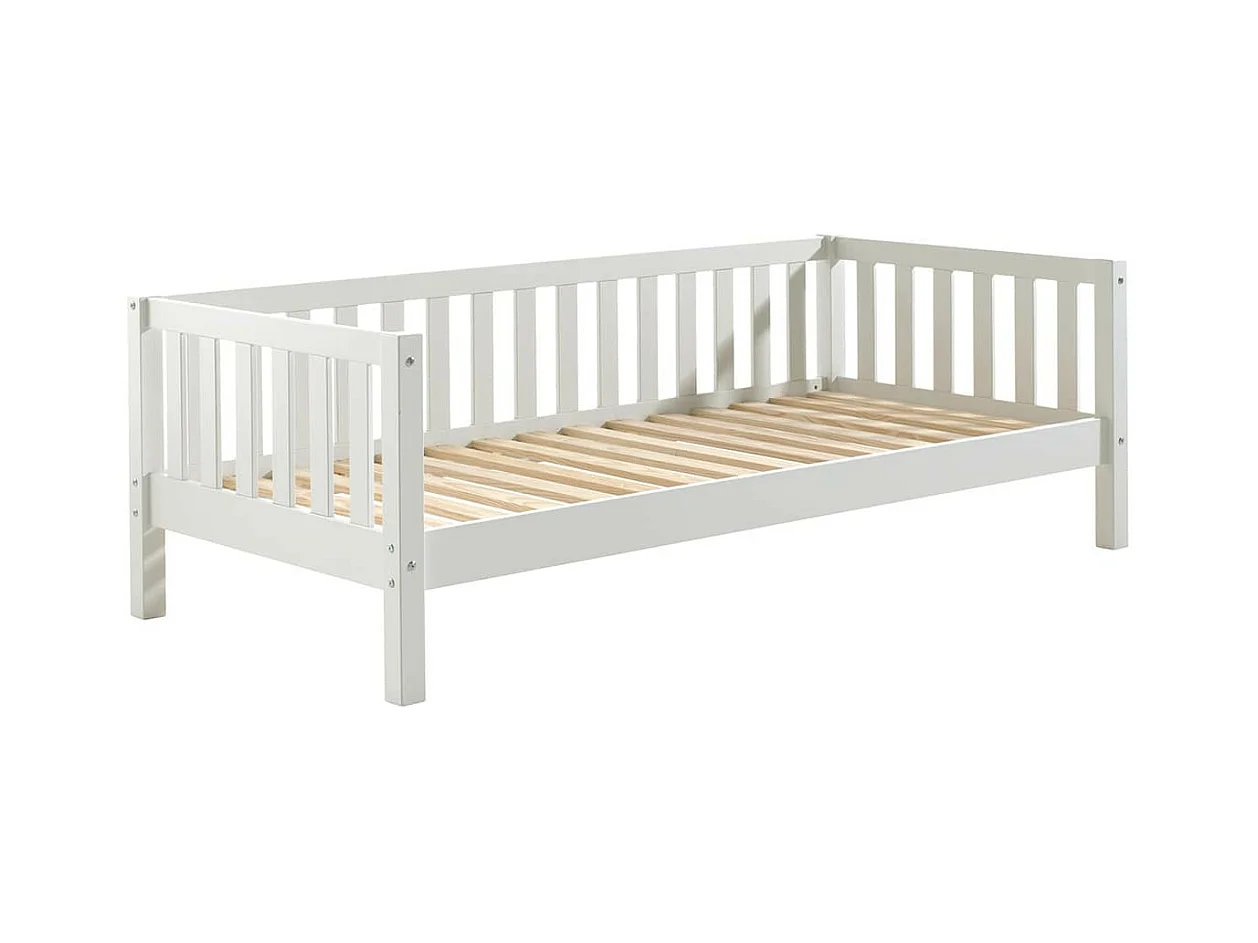 YAX - Lit Banquette 90x200cm en Pin Laqué Blanc