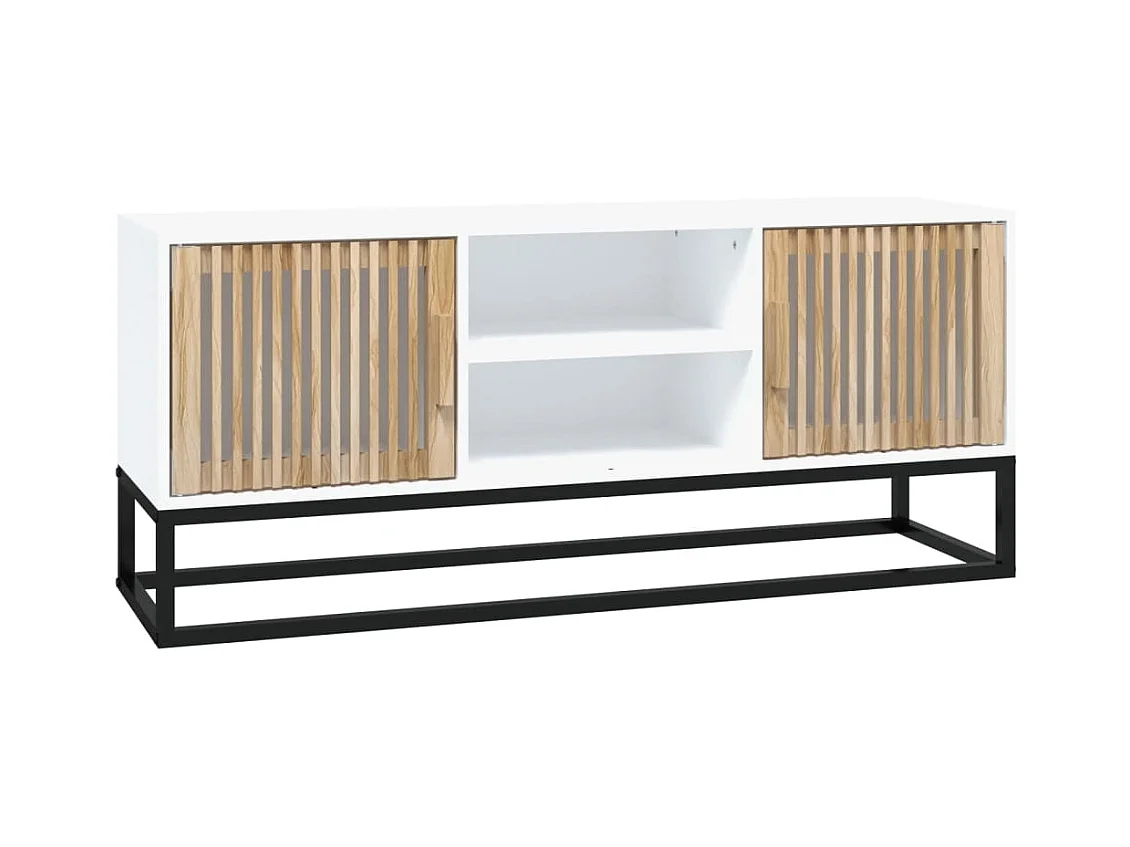 Yelara Meuble TV blanc 105x30x45 cm bois d'ingénierie et fer
