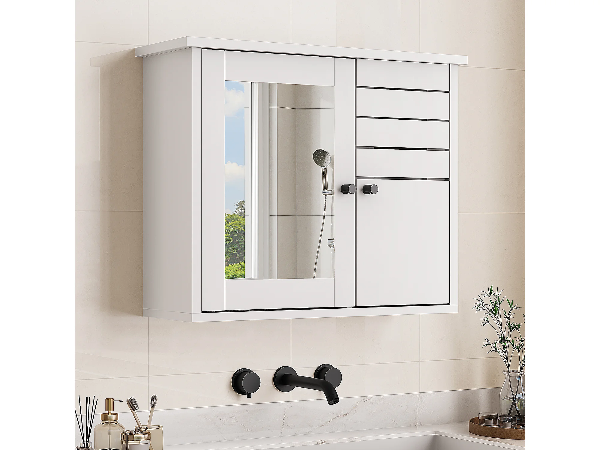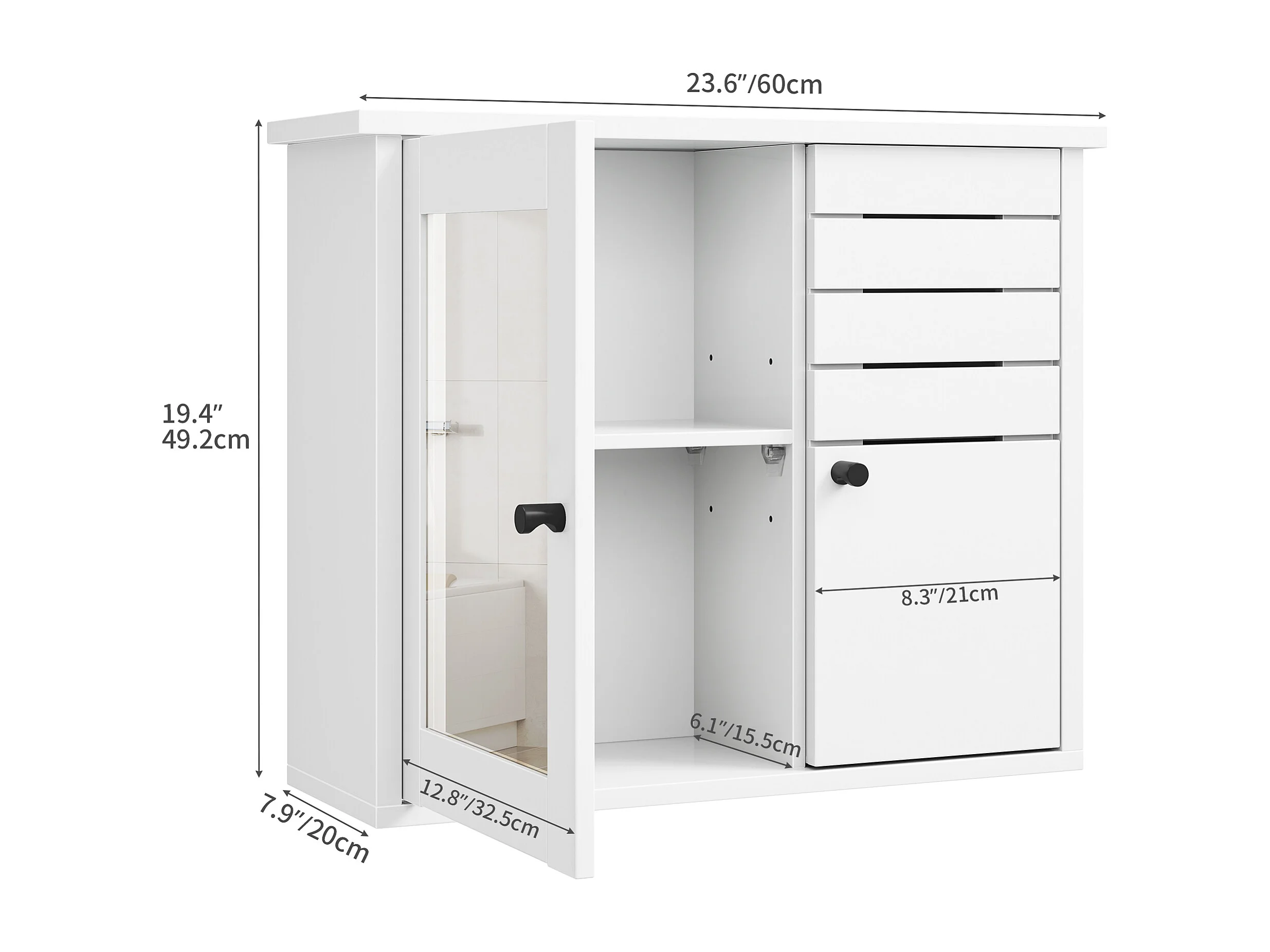 YITAHOME Armoire de Salle de Bain avec Miroir - Meuble de Rangement Mural - 60 x 20 x 49,2 cm - Blanc