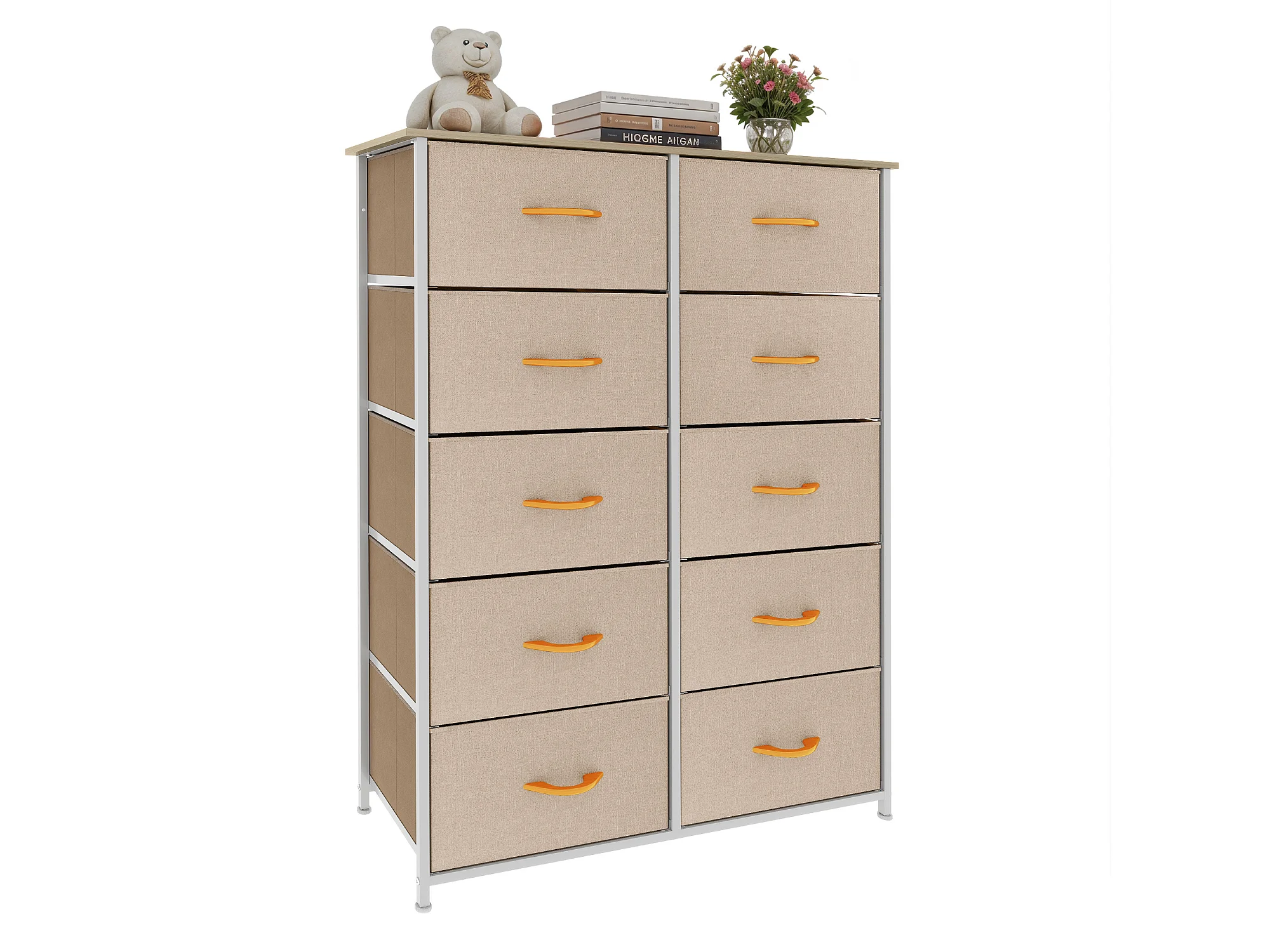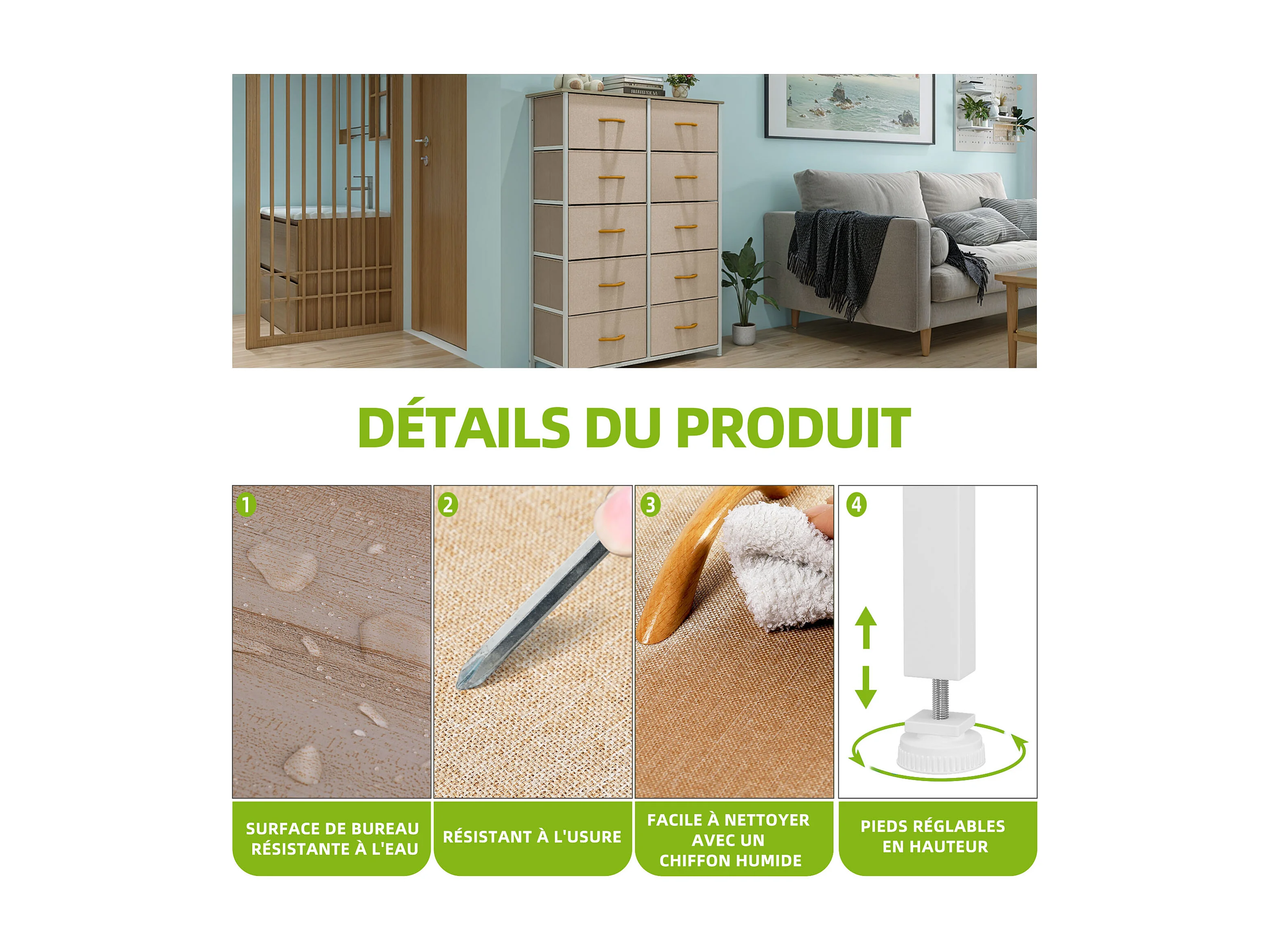 YITAHOME Commode - 10 Tiroirs en Tissu - Meuble de Rangement - Cadre Acier Robuste - pour Chambre à Coucher - Kaki