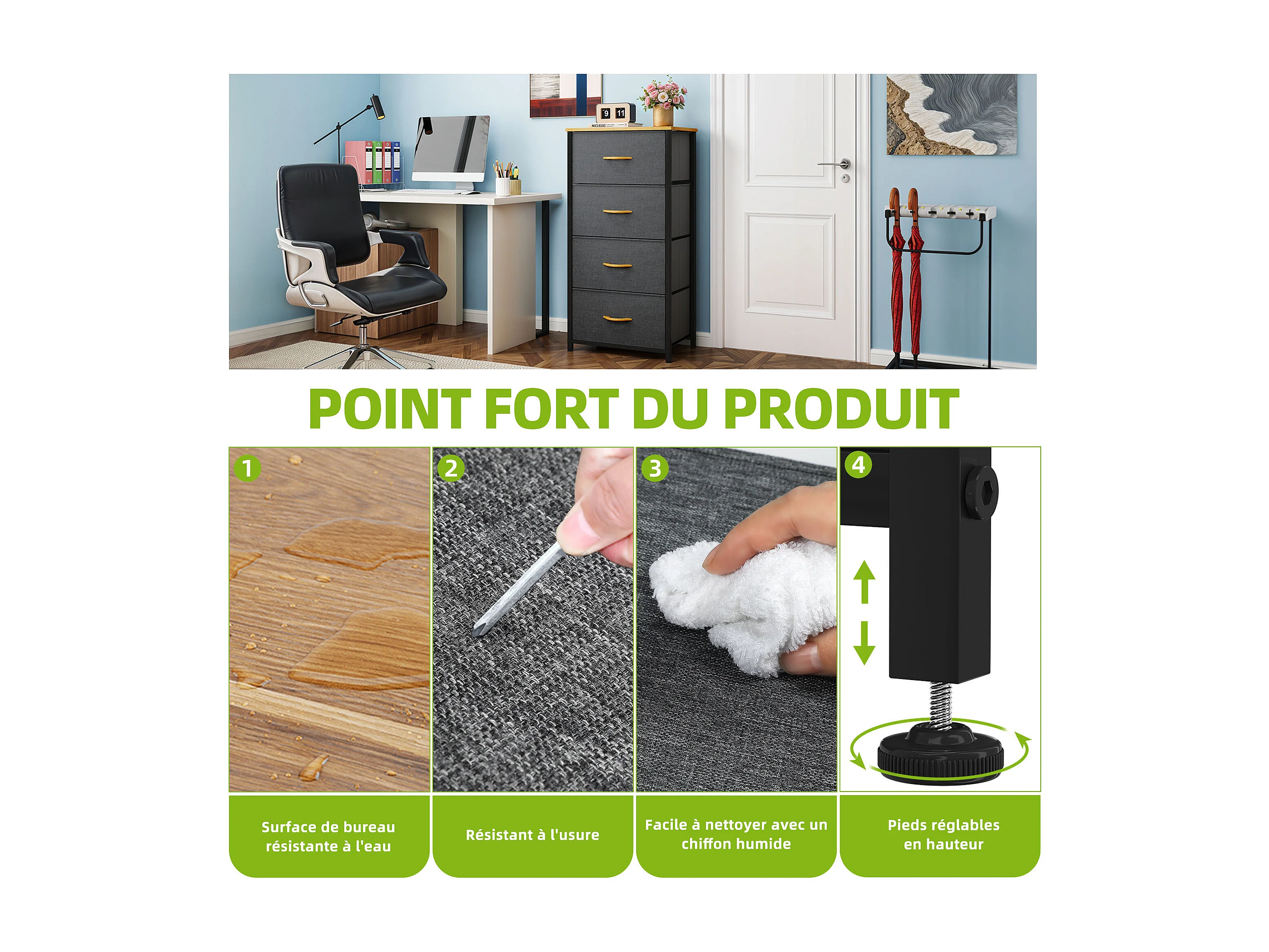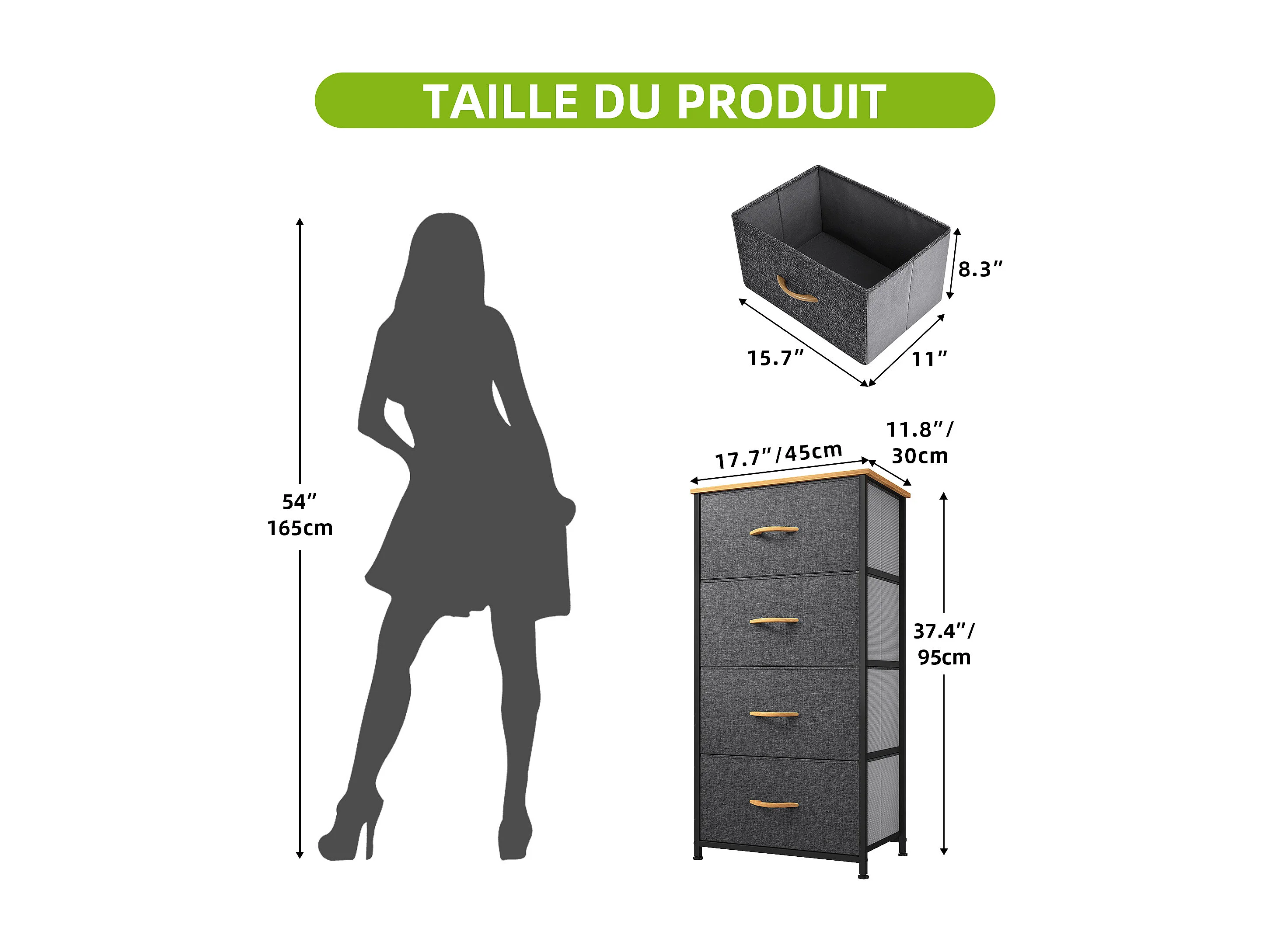 YITAHOME Commode - 4 Tiroirs en Tissu Commode Chambre Meuble de Rangement - Cadre en Métal - pour Chambre à Coucher - Salon - Gris Profond