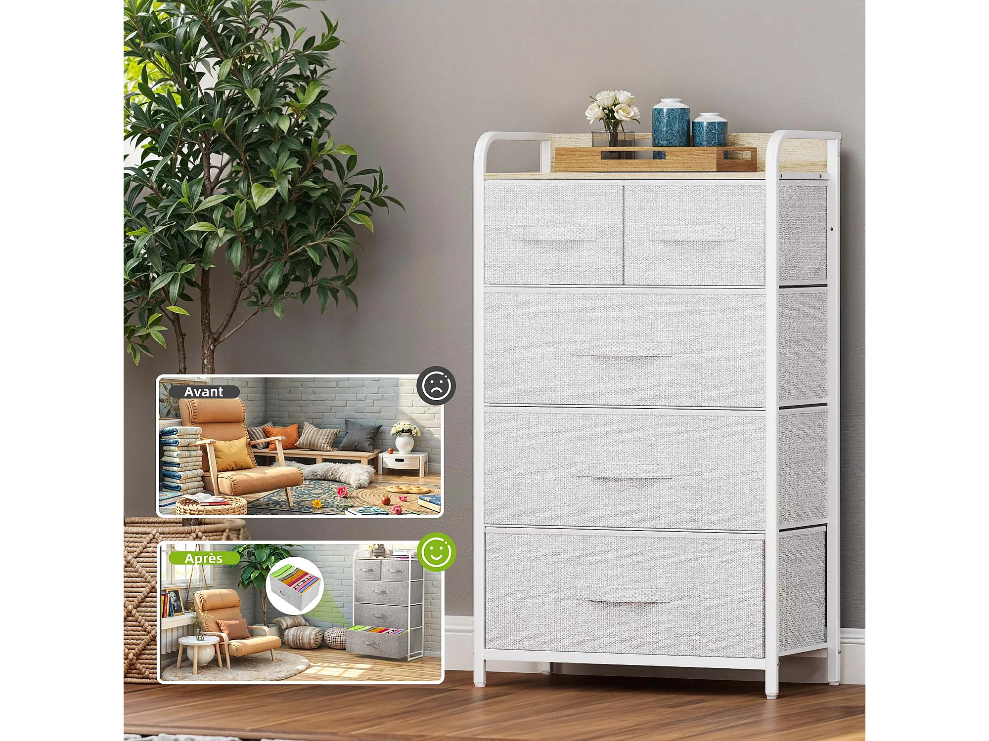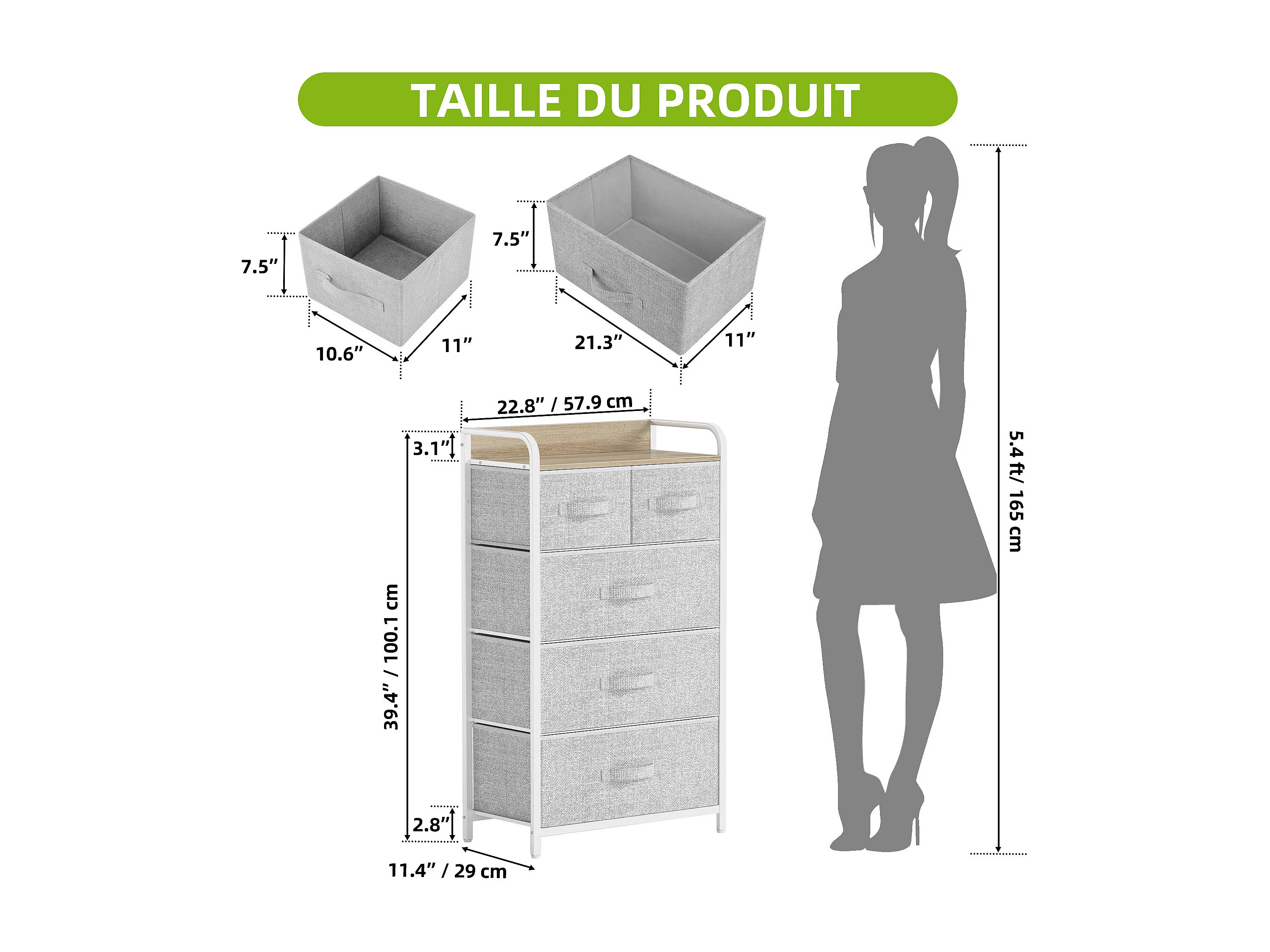 YITAHOME Commode - 5 Tiroirs en Tissu Meuble de Rangement - Tour en Tissu - Cadre Acier Robuste - Chambre - Salon - Gris Clair