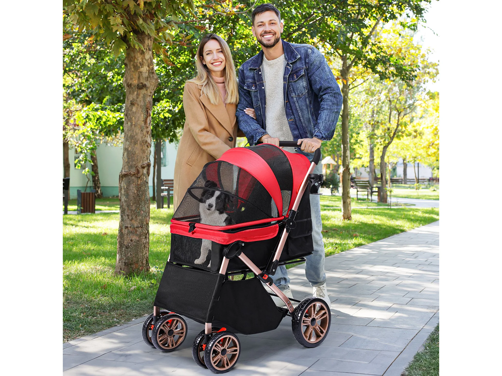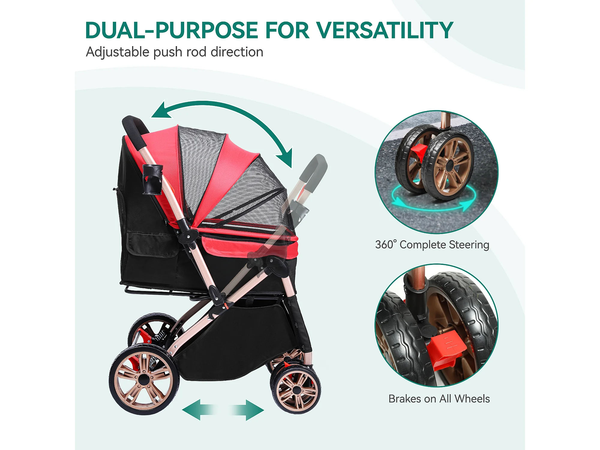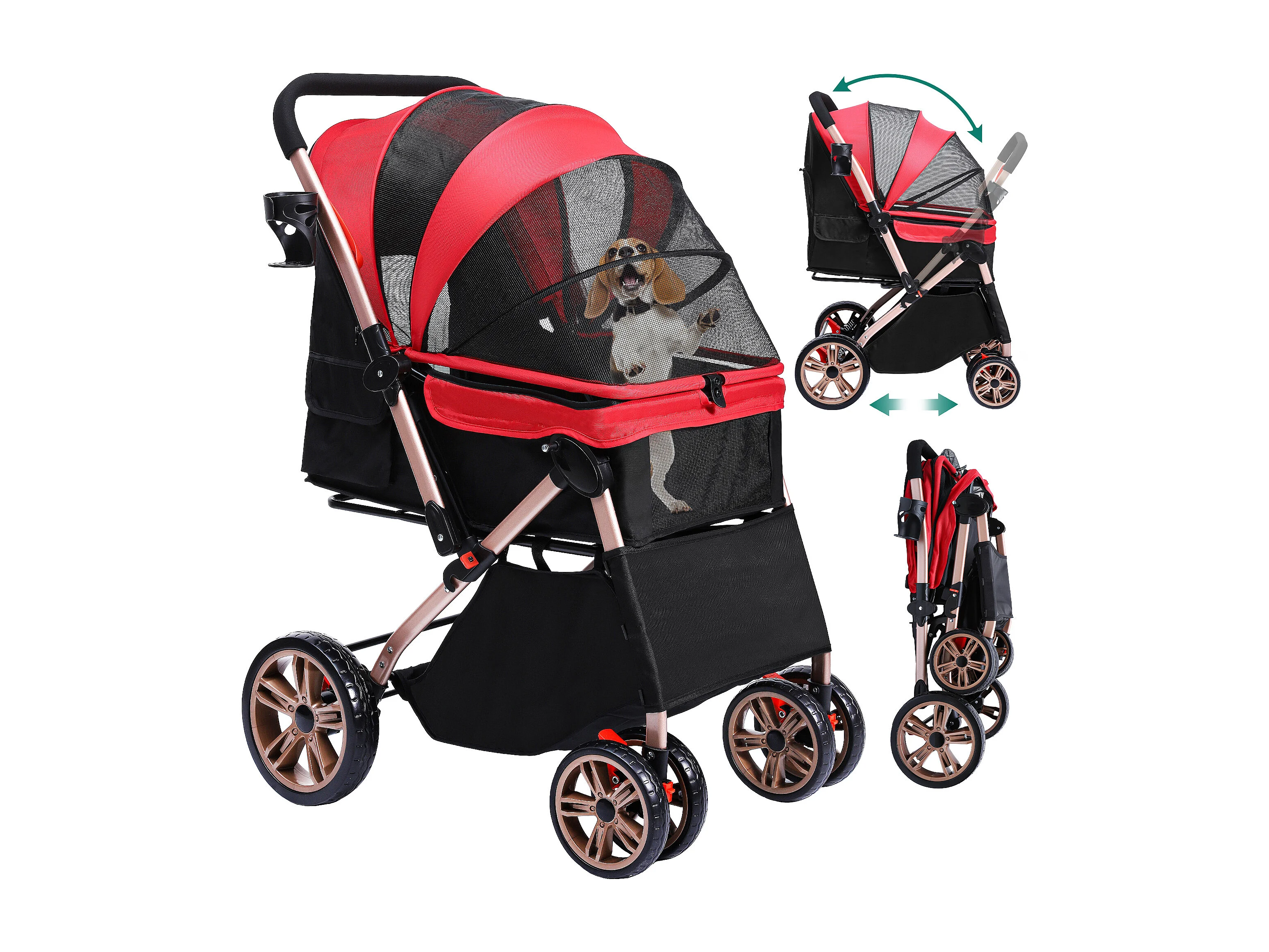 YITAHOME Poussette pour Chien Chat - avec Panier de Rangement - 4 Roulettes - Pliable - Rouge