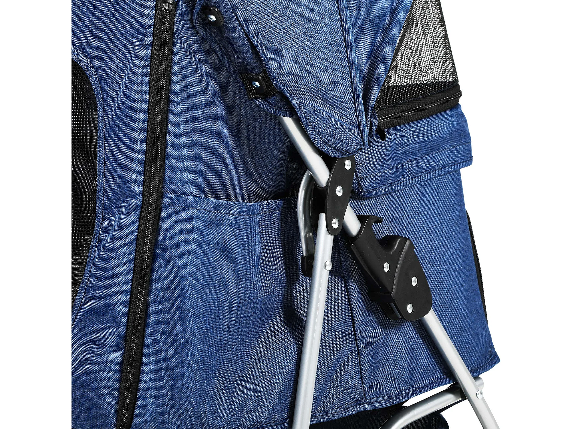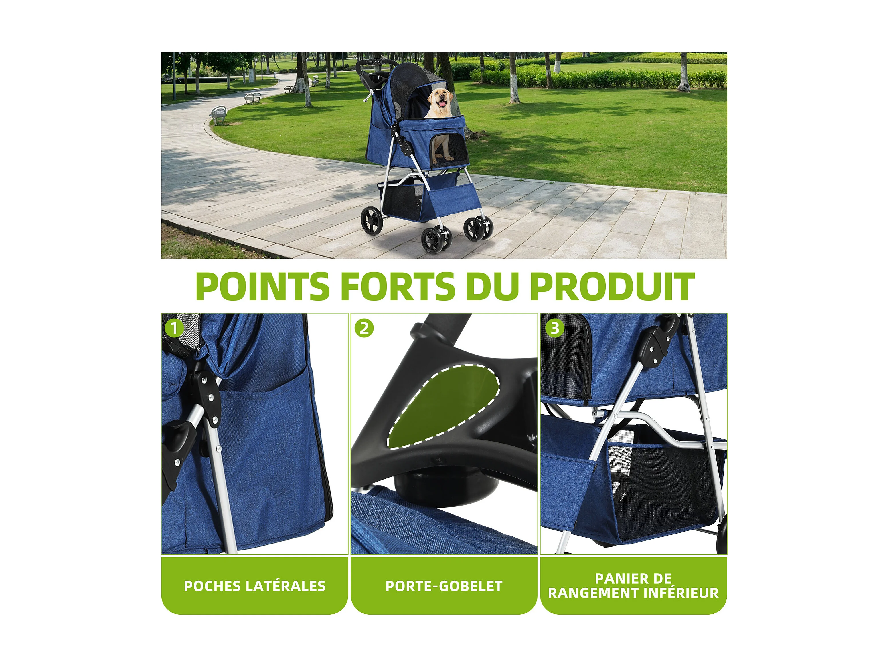 YITAHOME Poussette pour Chiens Petite et Moyenne Taille - 4 Roues avec Panier de Rangement - Pliable - avec Porte-Gobelet - Bleu Marine
