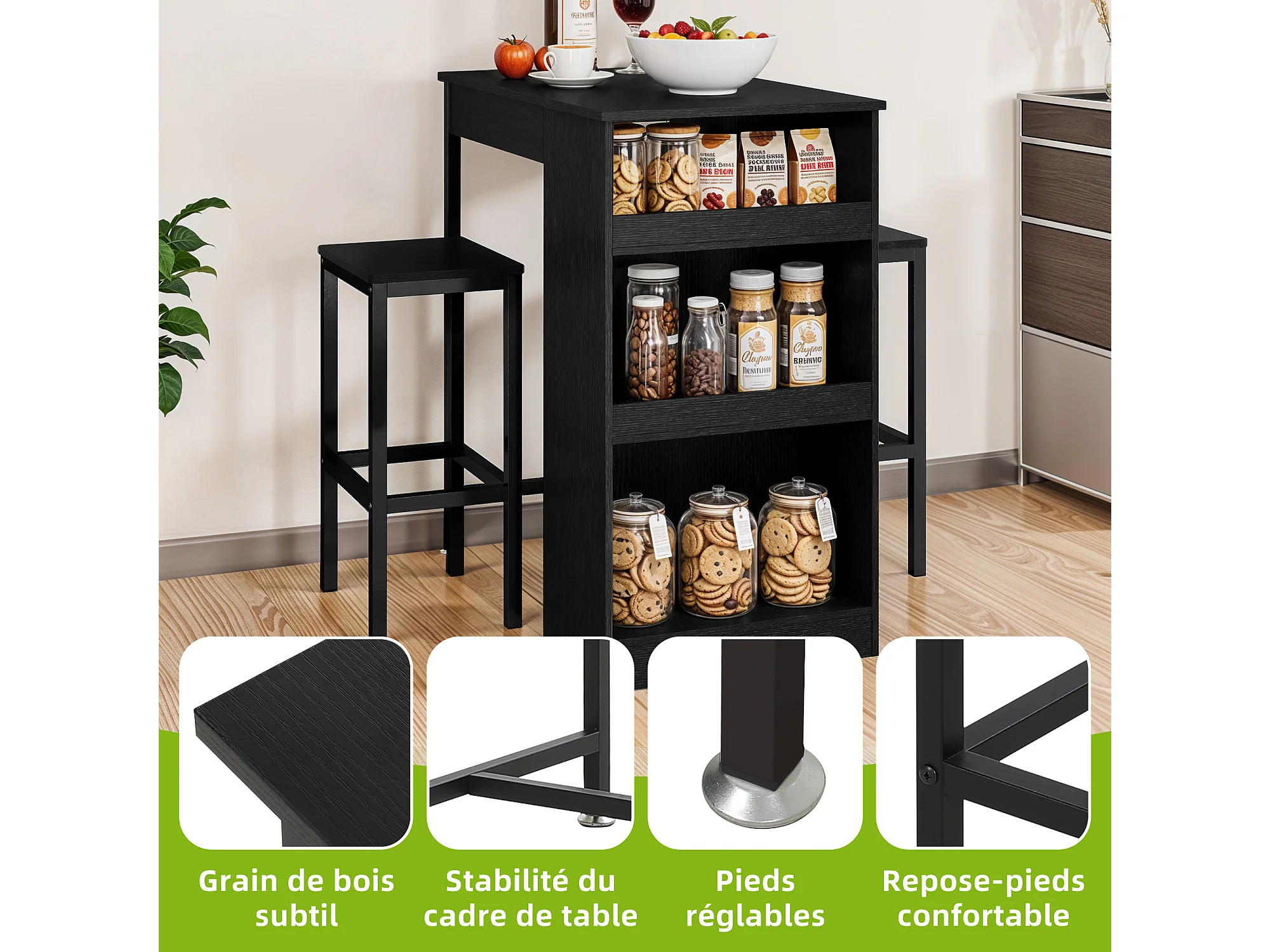 YITAHOME Table de bar 3 Pièces - 2 tabourets - Noir - Étagères ouvertes - pour la Maison, la Cuisine, le Pub et le Café