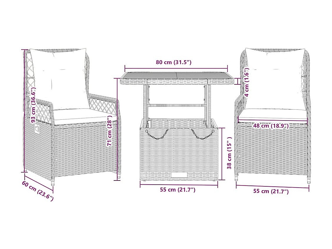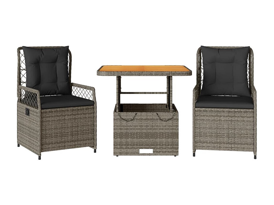Ylva Ensemble à manger de jardin 3 pcs coussins gris résine tressée
