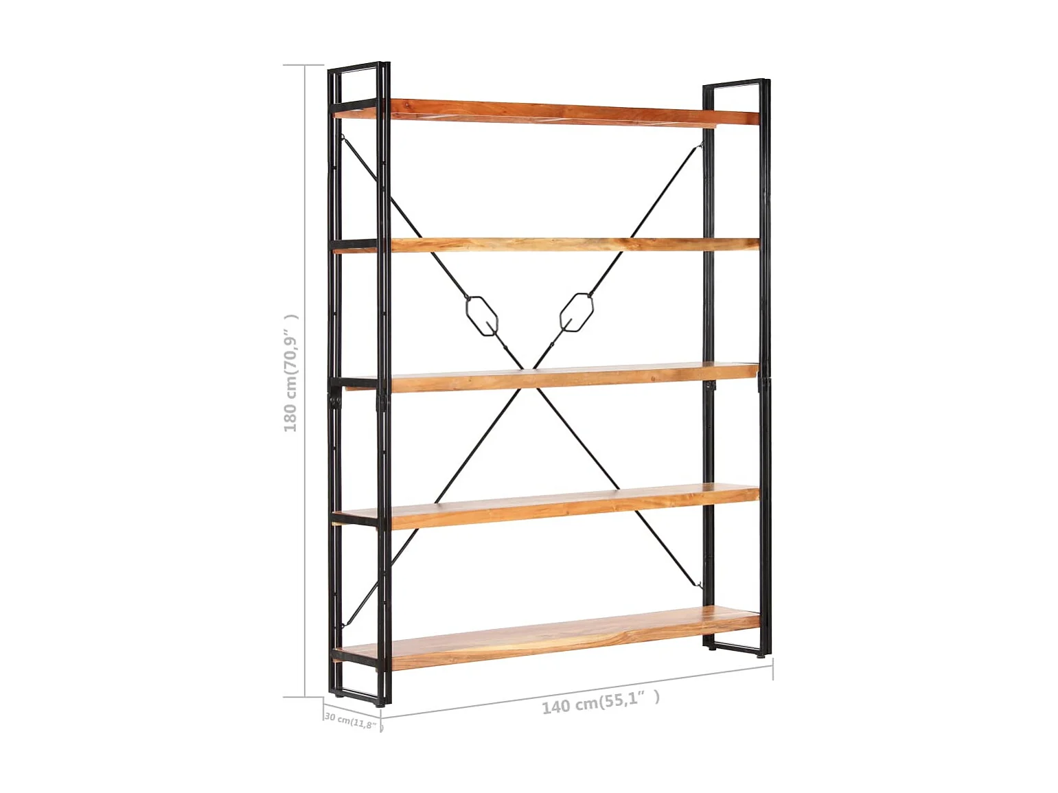 Yoan Bibliothèque à 5 niveaux 140x30x180 cm Bois d'acacia solide
