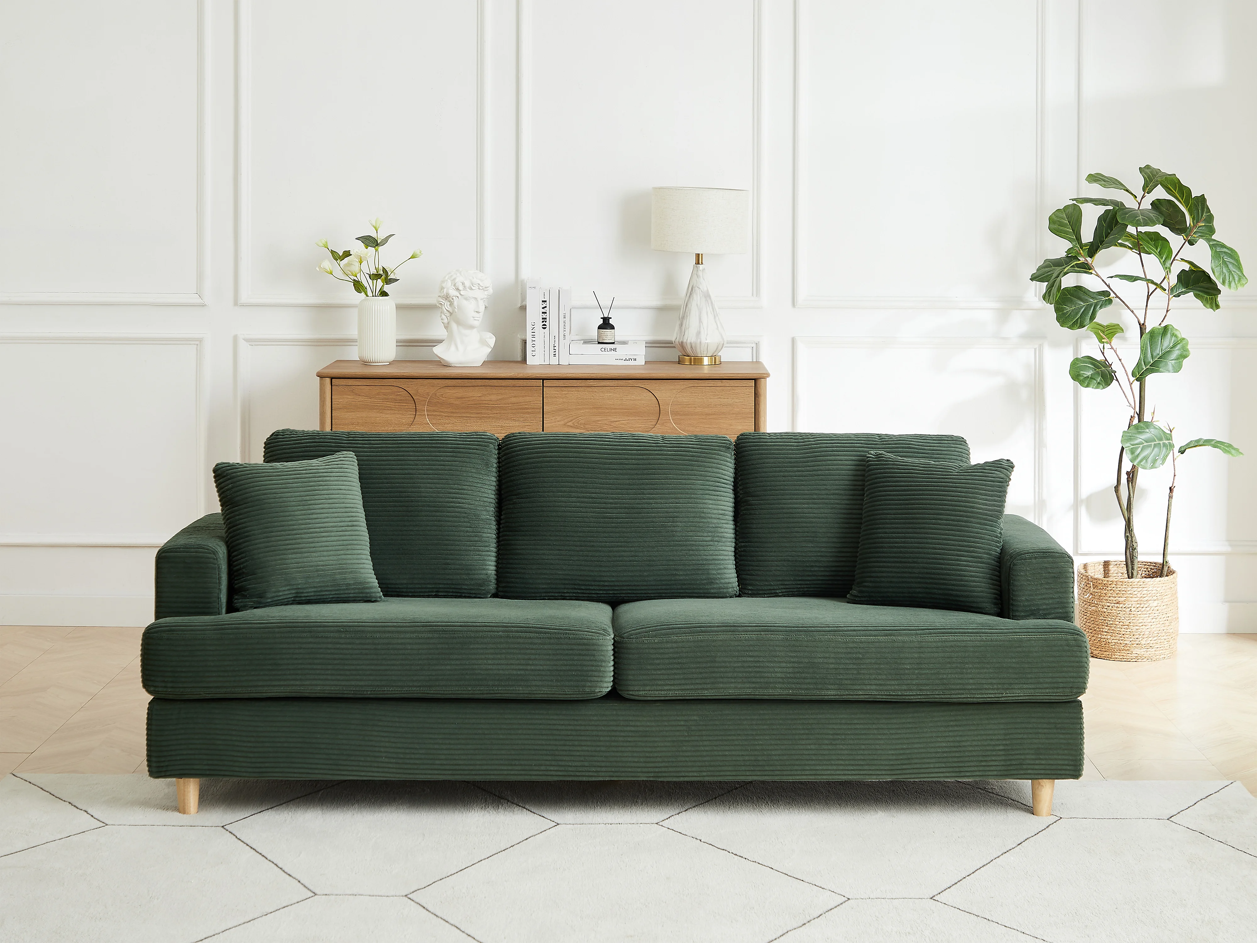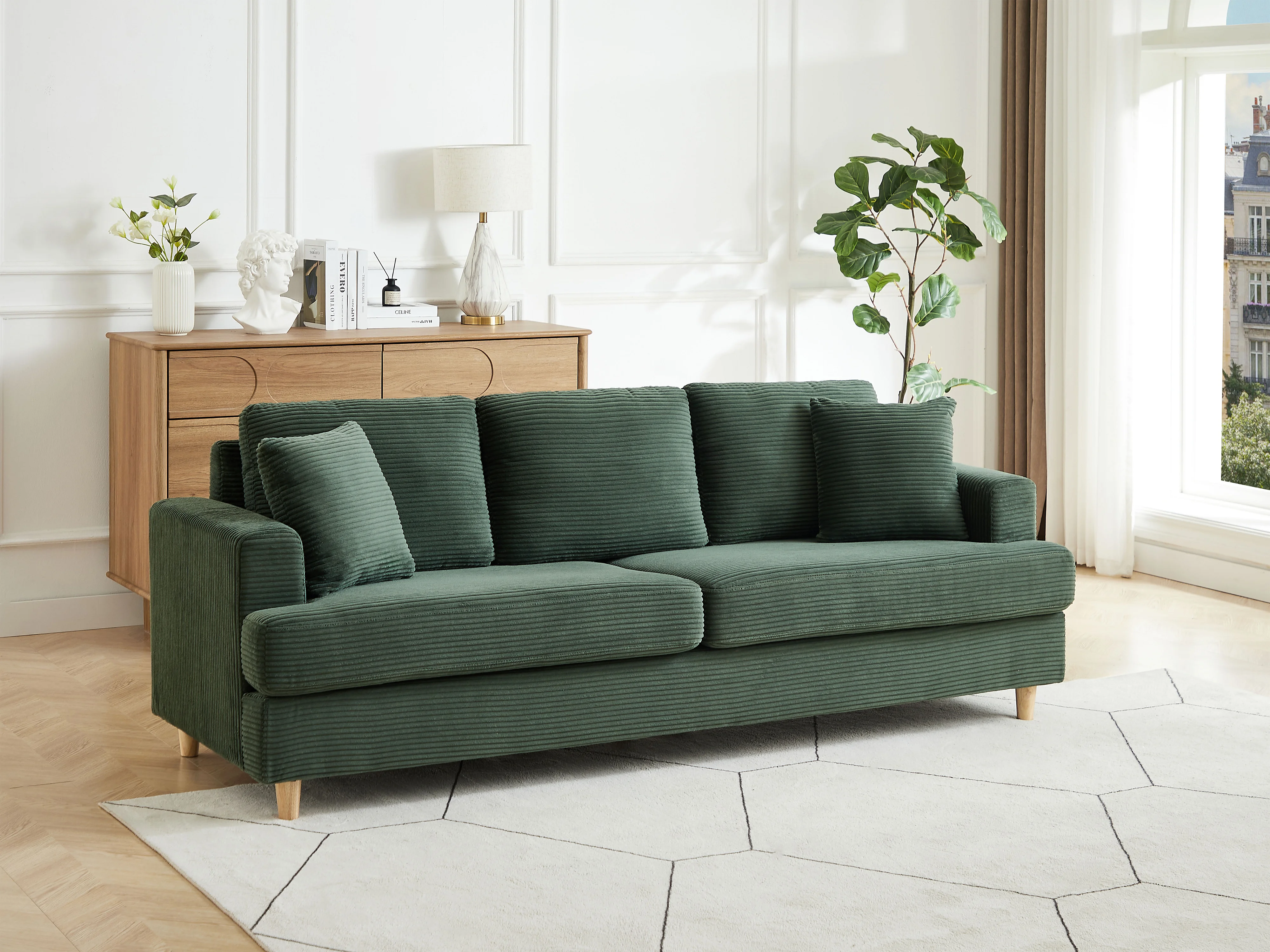 Canapé 3 places en velours côtelé vert YOCABA