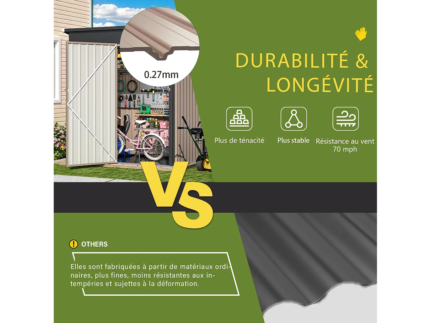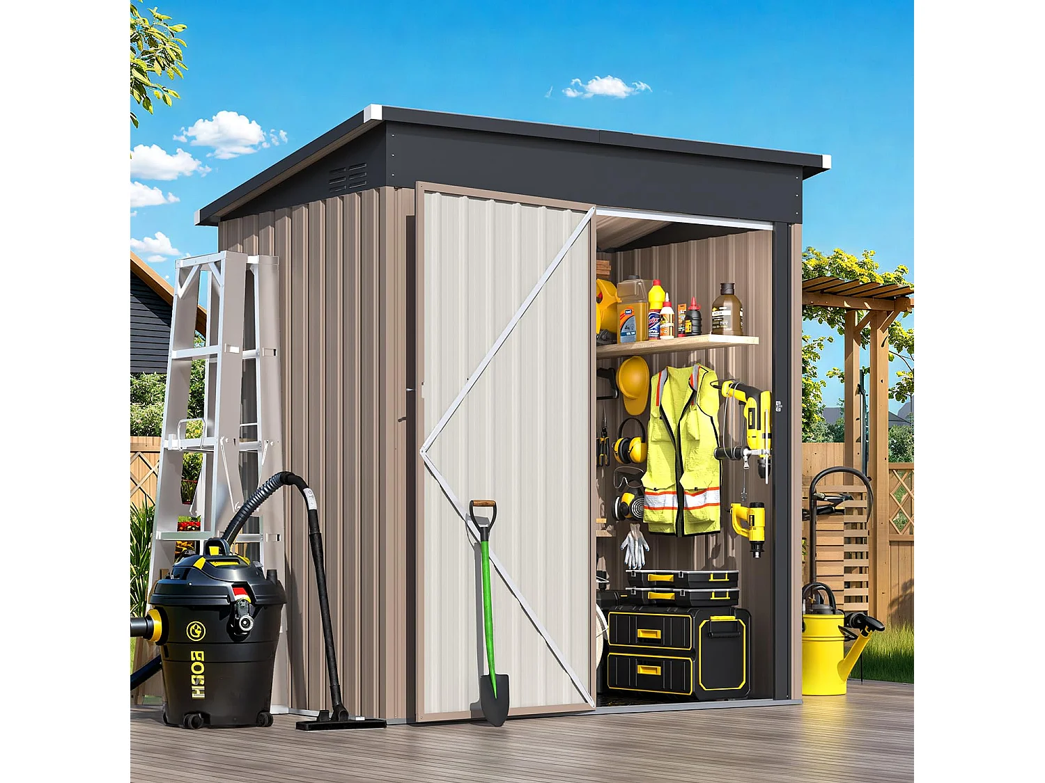 YODOLLA Abri de Jardin en Métal avec Toit Incliné, Porte Coulissante & Sol, Boîte de Rangement Étanche 150x85.6x159cm, Gris