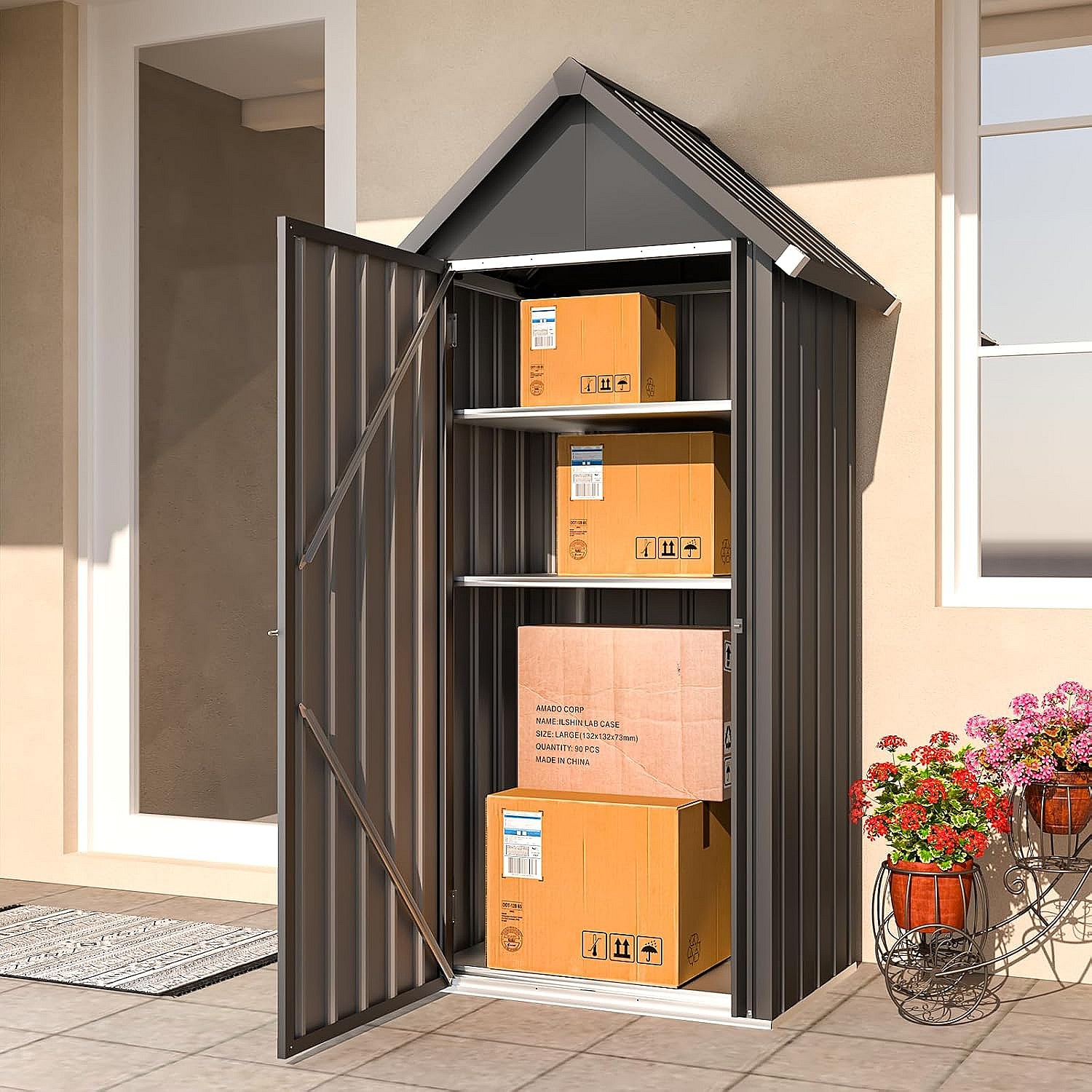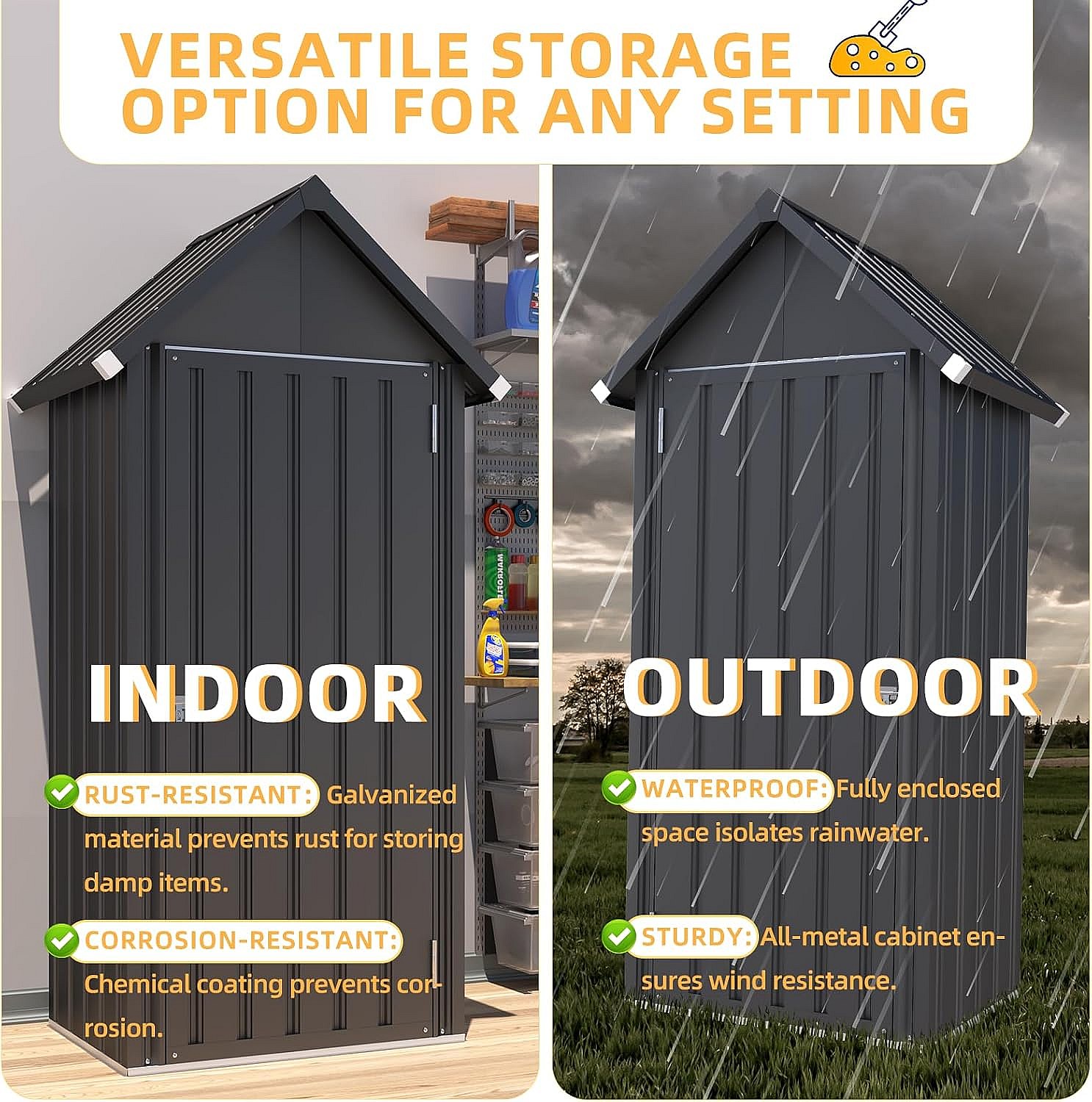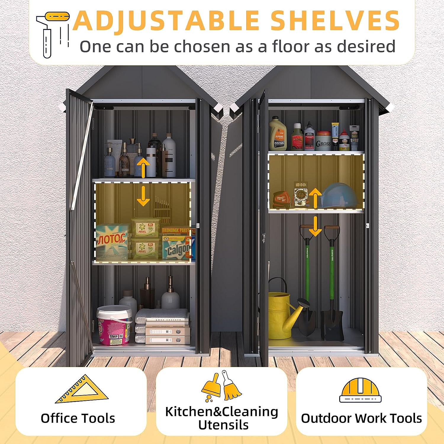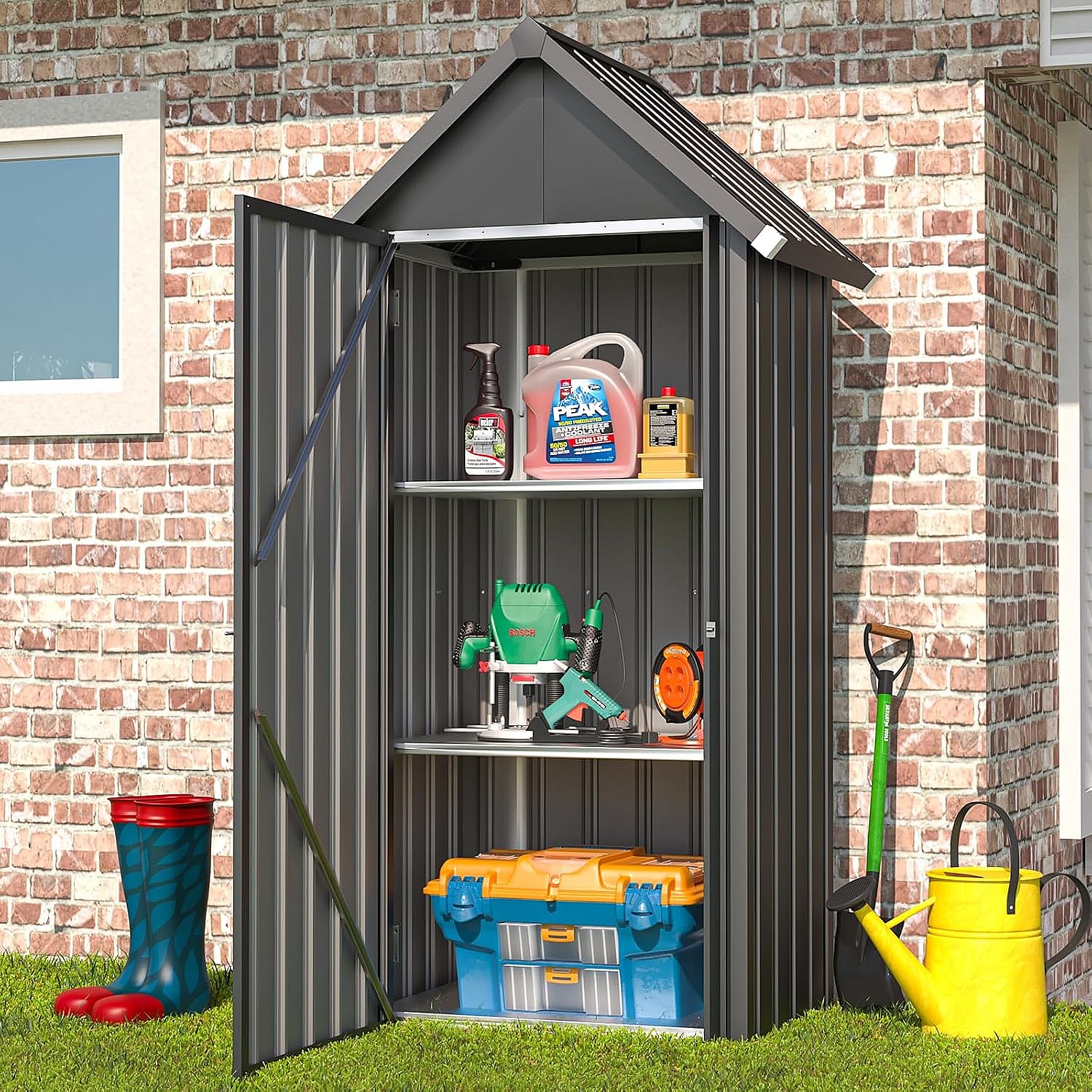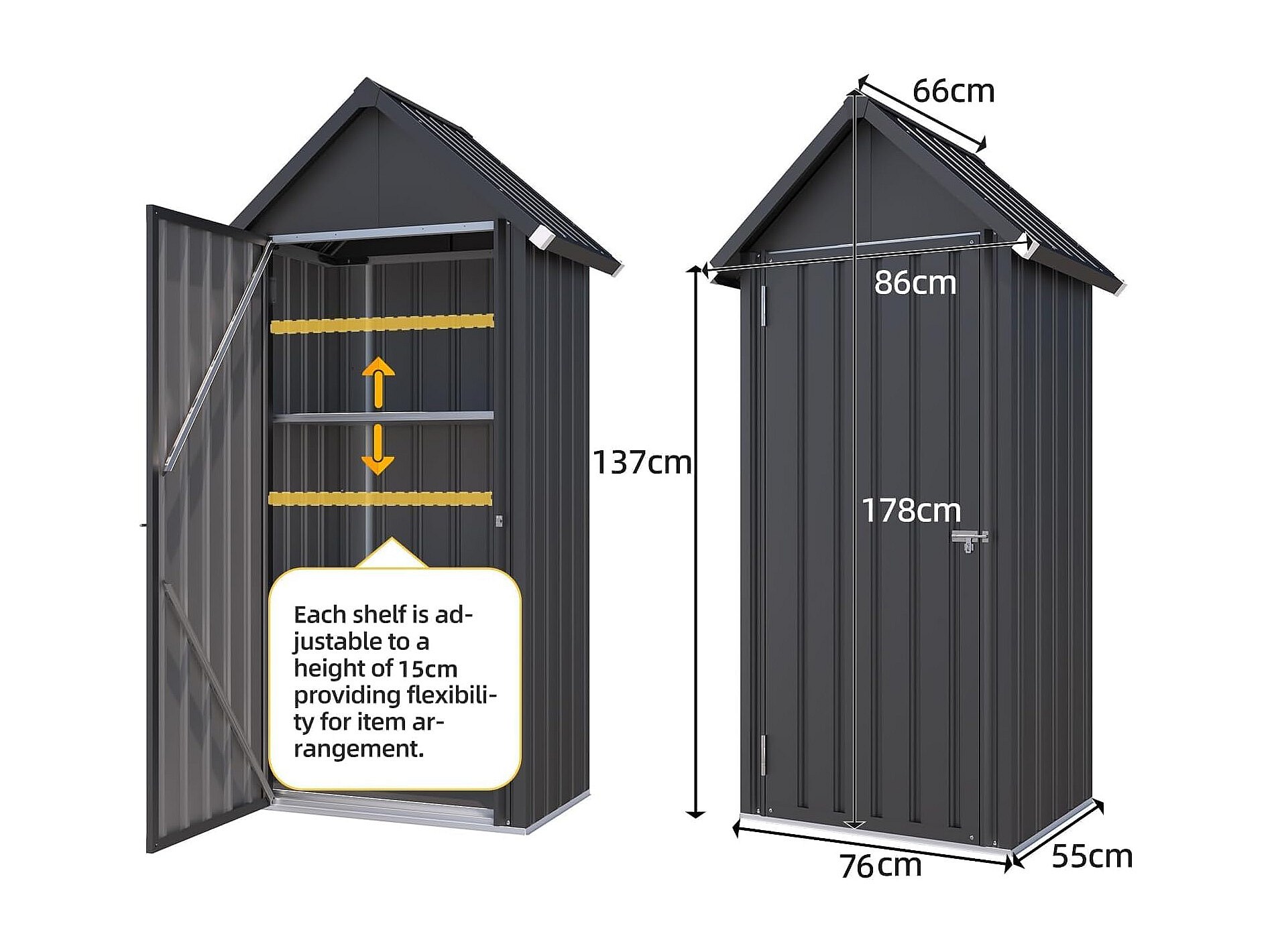 YODOLLA Armoire de jardin Abri de jardin Hangar, Petit abri avec socle Et serrure verrouillable, Acier galvanisé, 86x55x178cm, Gris foncé