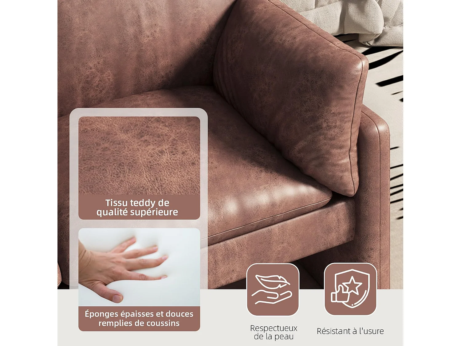 YODOLLA Canapé 2-3 Places Moderne 172 cm - Cuir Synthétique Résistant, Coussin Épais, Confortable pour Salon/Chambre, Brun