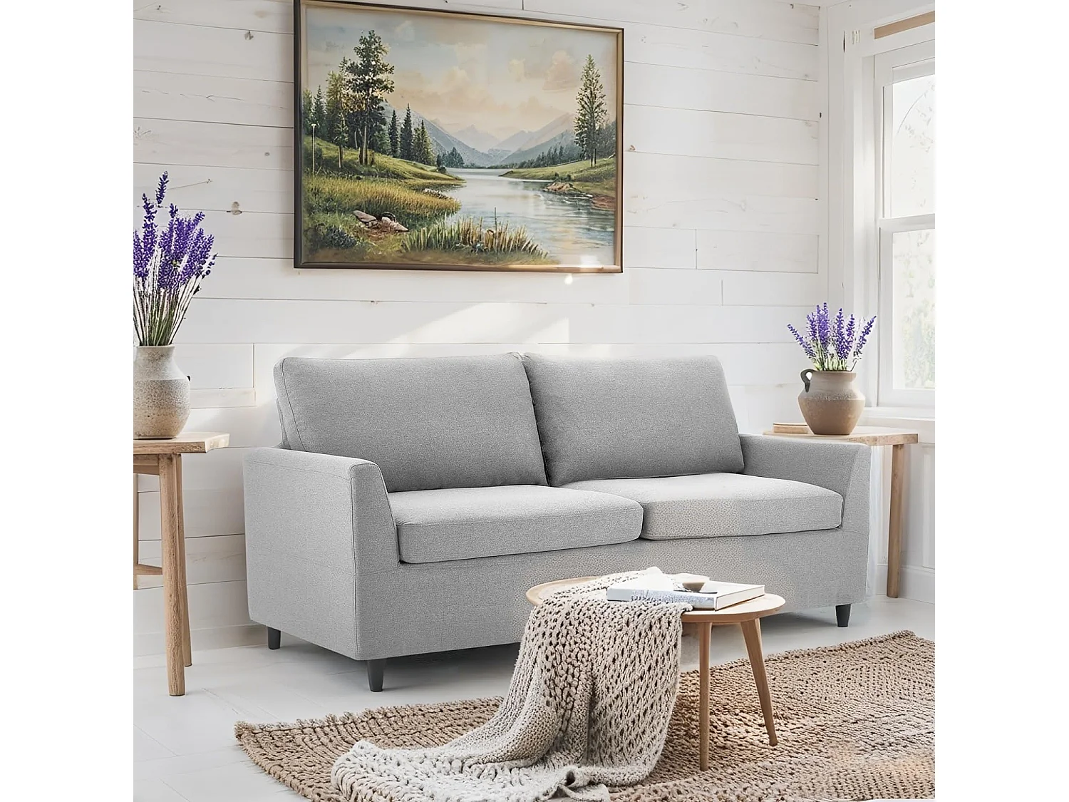 YODOLLA Canapé 2 Places en Lin avec Housses Amovibles, Moderne et Confortable pour Salon, Appartement ou Bureau, Gris Clair