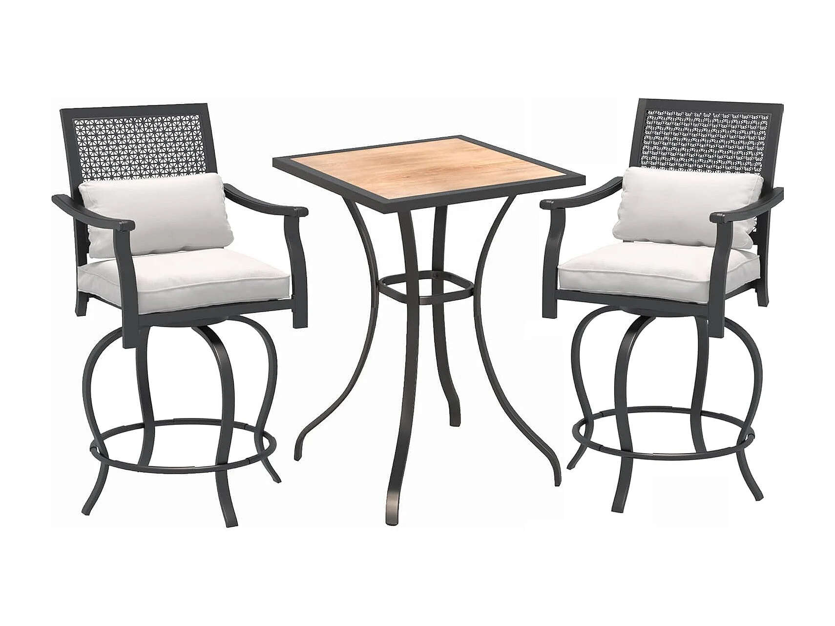 YODOLLA Ensemble de Bar Extérieur 3 pièces, 1 Table Haute + 2 Tabourets Hauts Rotatifs 360° en Métal pour Jardin & Patio, Noir