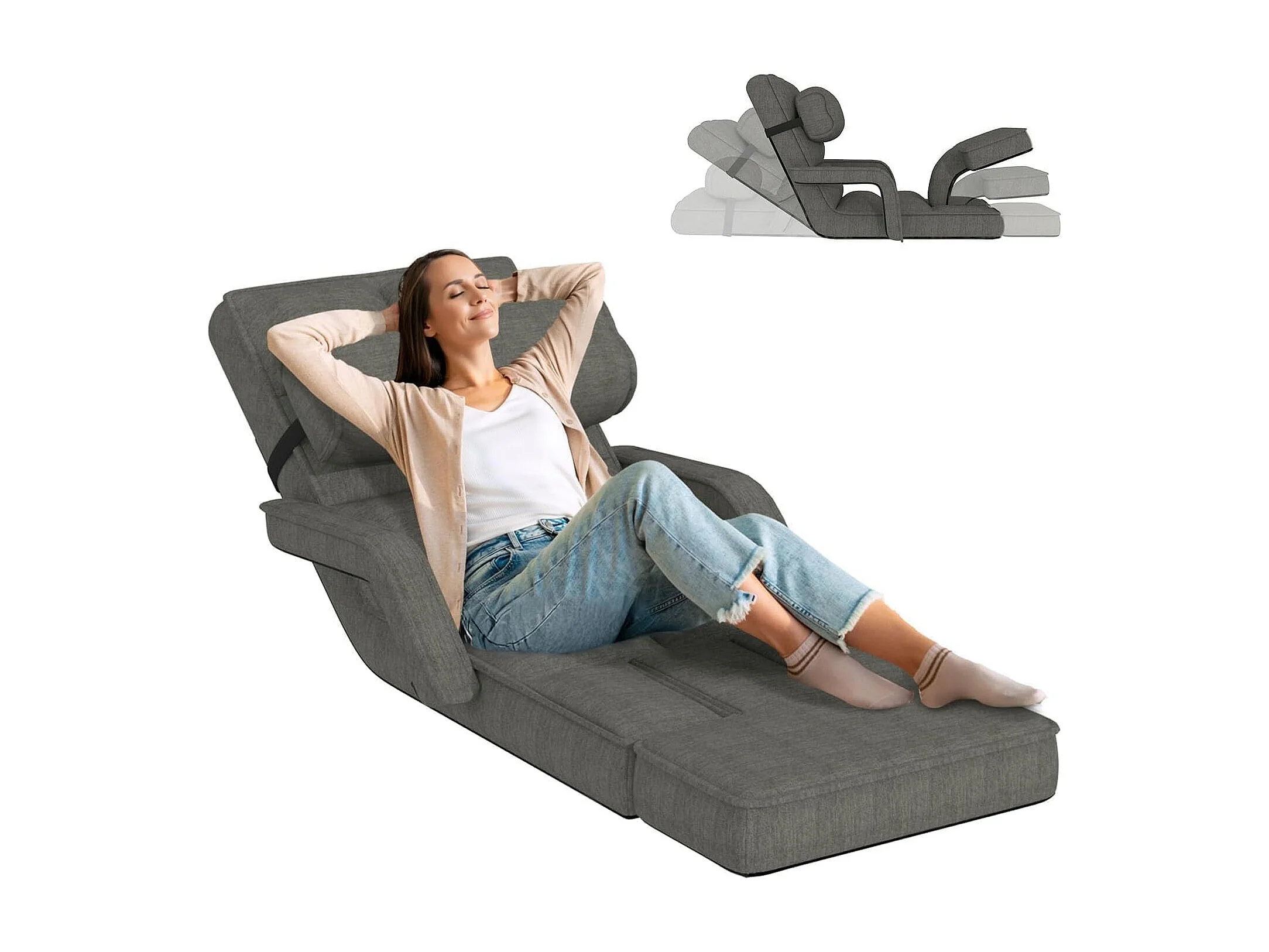 YODOLLA Fauteuil de Sol, Pliable avec coussin & repose-pieds pour chambre, Bureau, Maison, Gris foncé