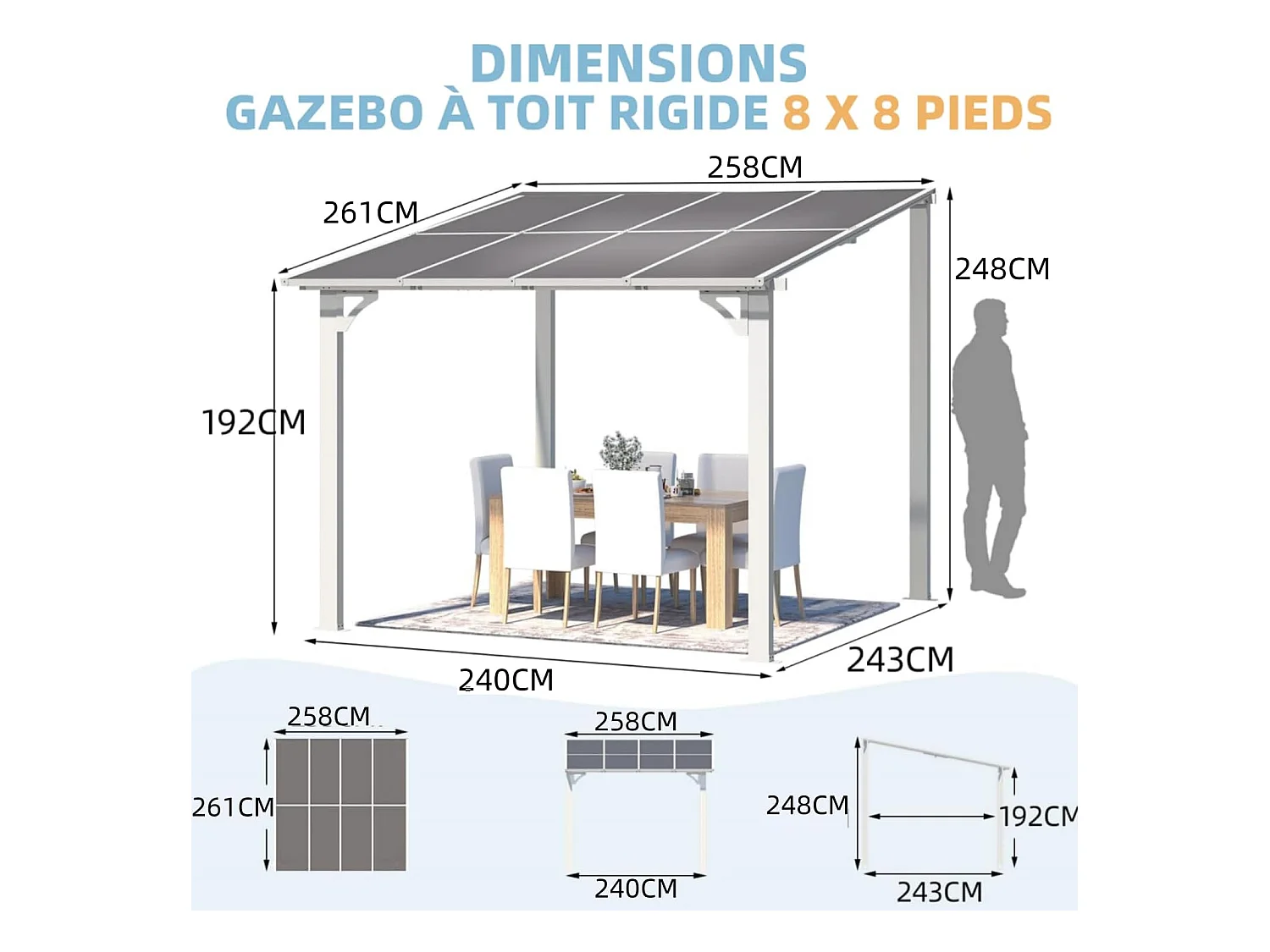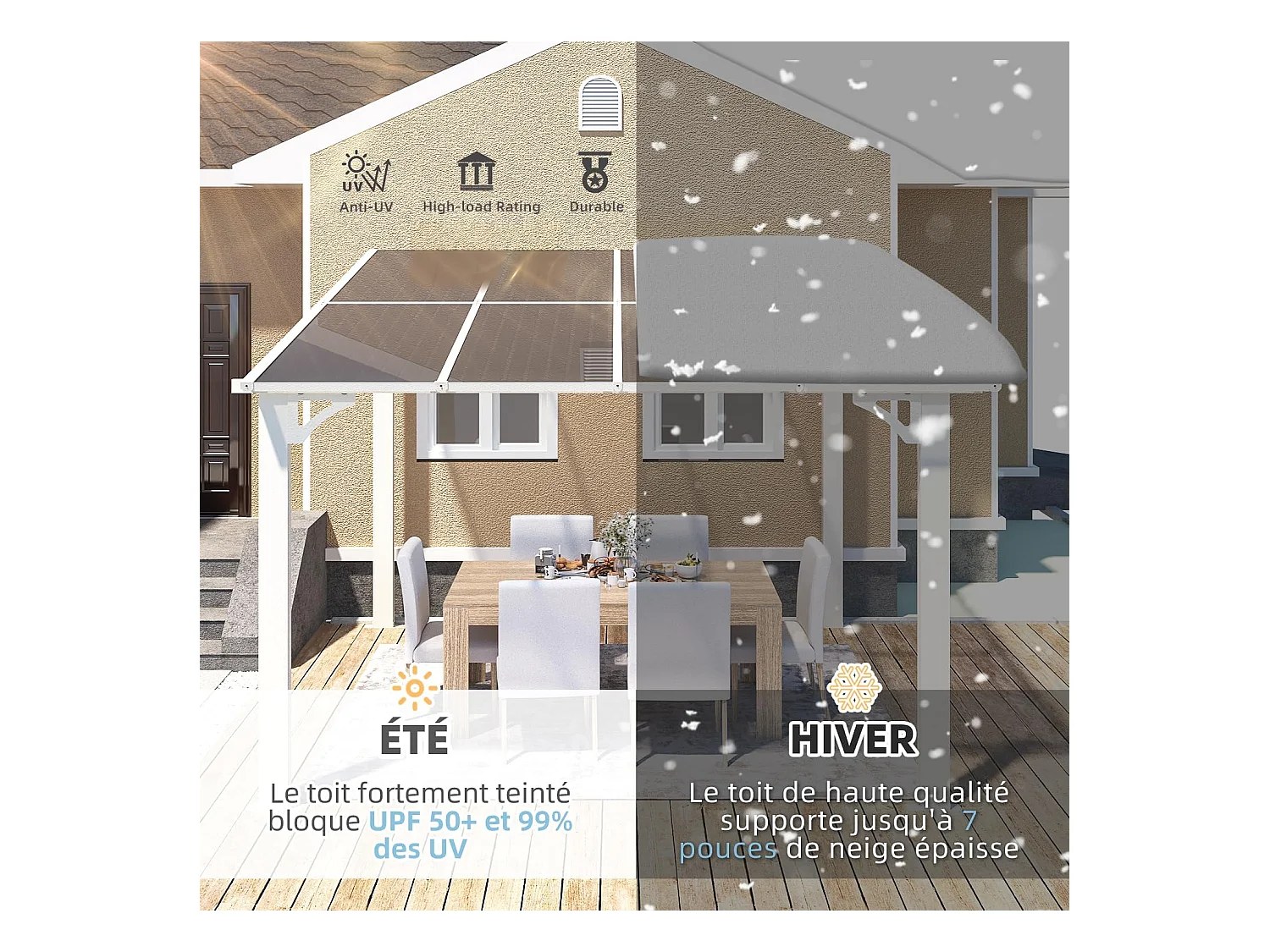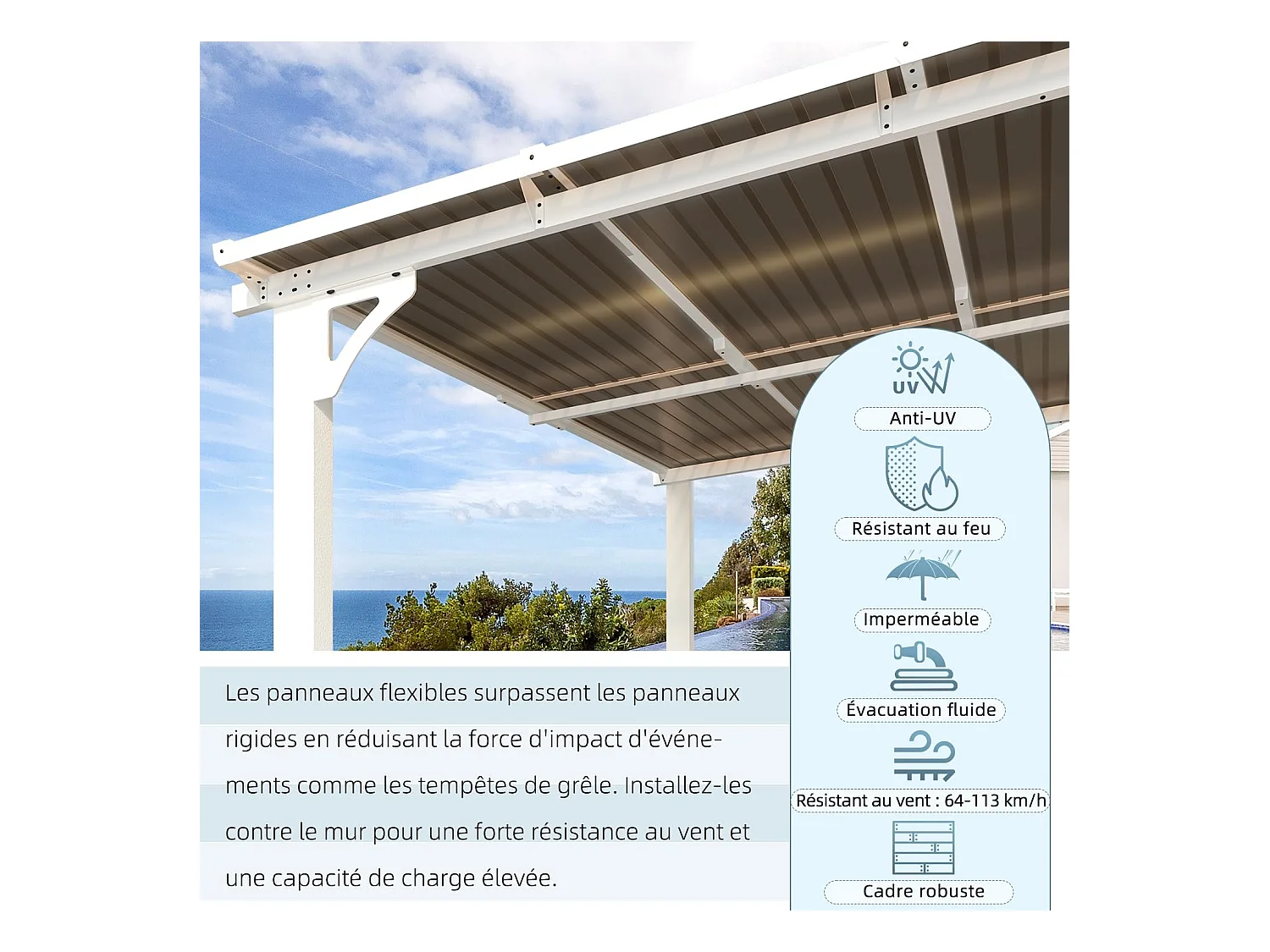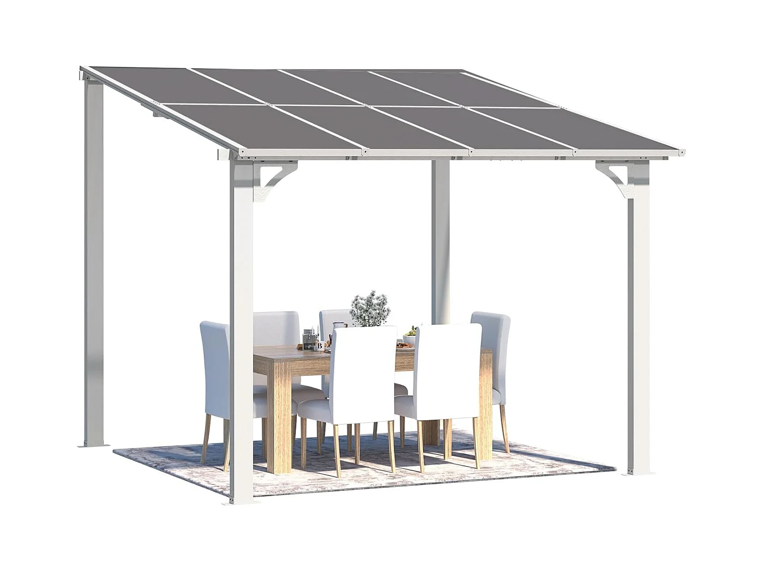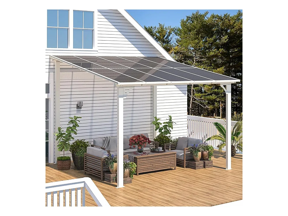 YODOLLA Pergola Murale en Aluminium et Polycarbonate - Résistante aux intempéries - 2.4 x 2.4m - Blanche