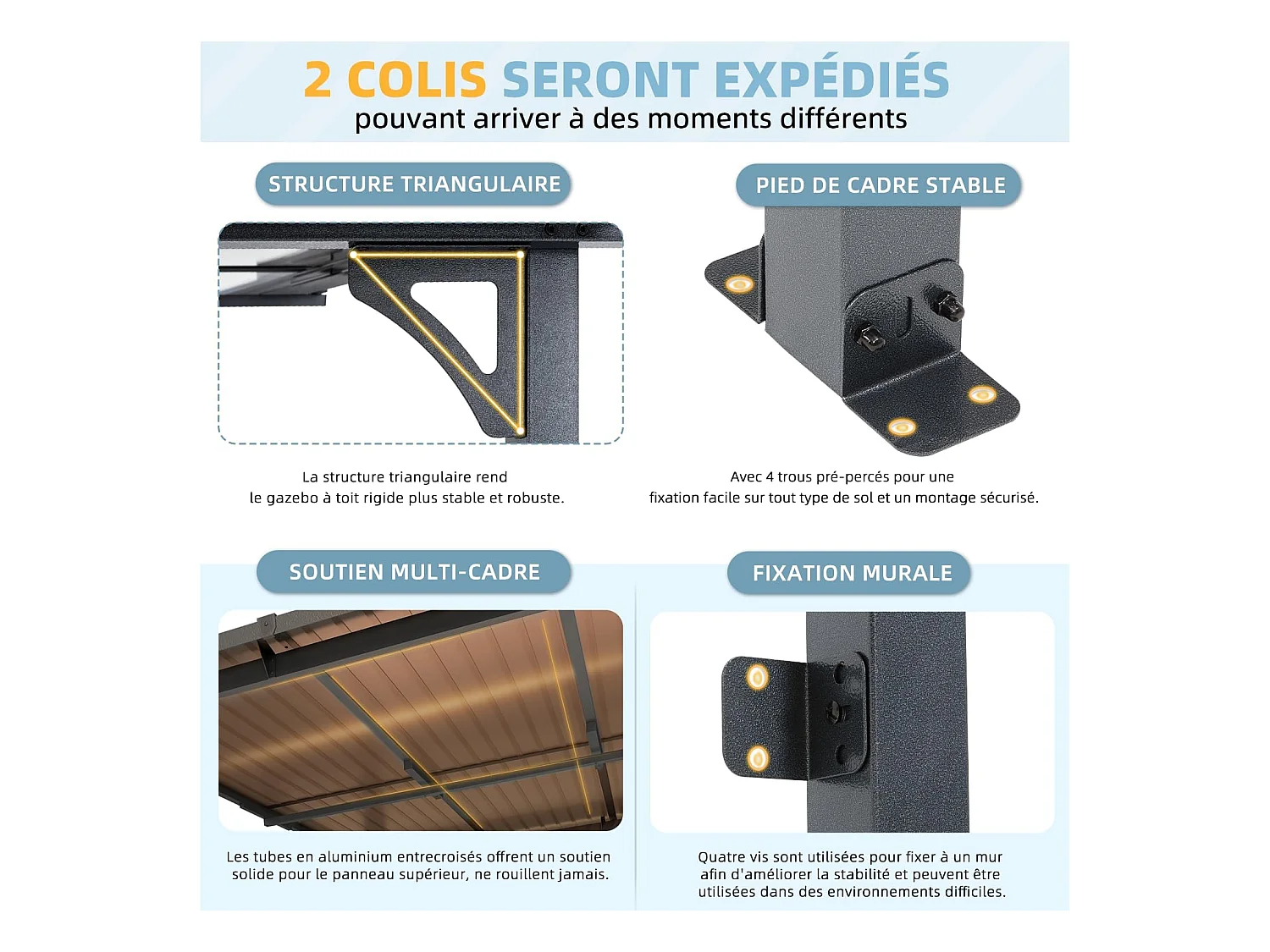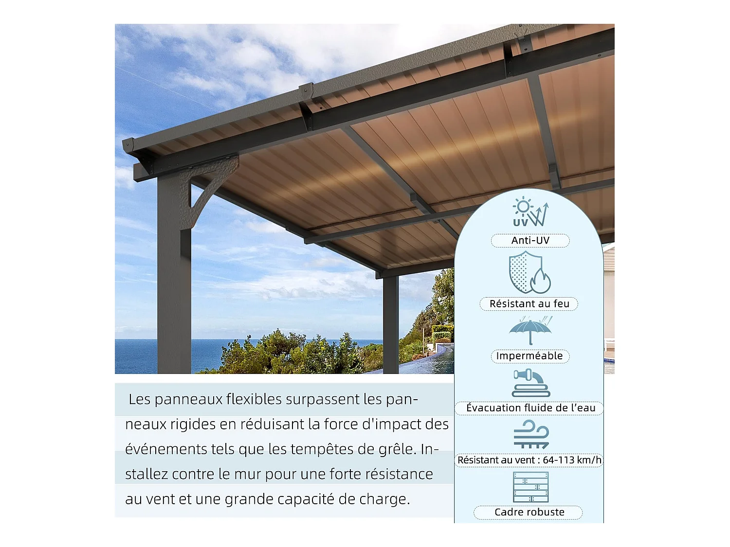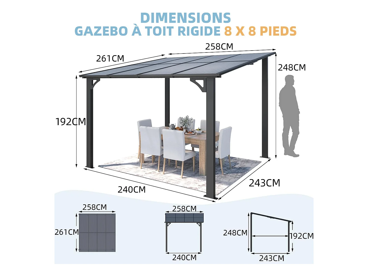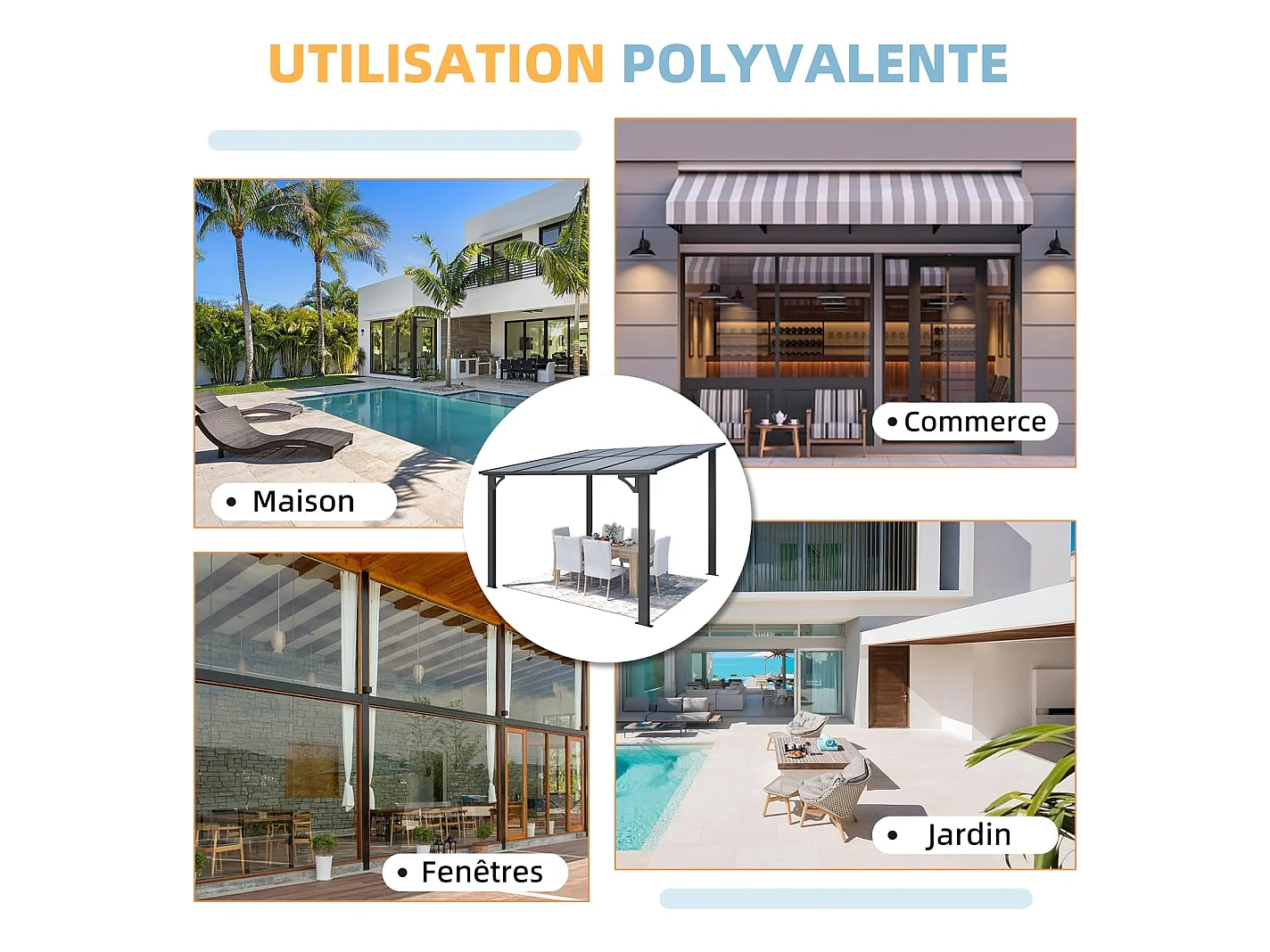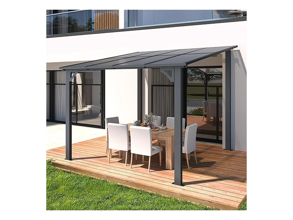YODOLLA Pergola Murale en Aluminium et Polycarbonate - Résistante aux intempéries - 2.4 x 2.4m - Gris
